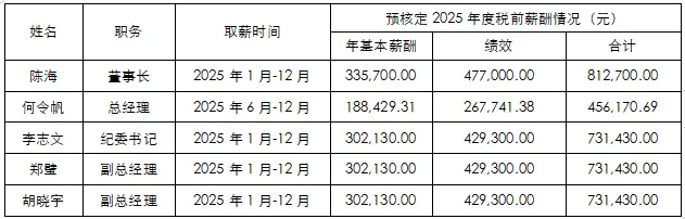 备注:上表披露2025年度预核定薪酬为公司企业负责人报告期内应发税前薪酬(不含发放以往年度绩效)