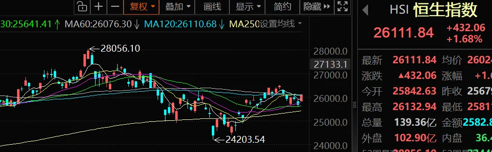 港股是中外资金的角力池,恒生指数冲返26000。南向资金净买入超27亿。