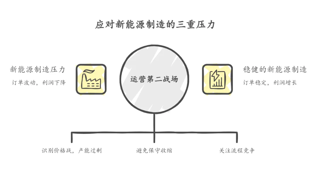 过去几年,如果只看新闻标题,新能能源似乎一直是“高景气赛道”:电动车渗透率持续提升,储能和光伏装机连创纪录,动力电池和材料企业的产能规划一轮接一轮。但站在工厂一线,感受往往截然不同:订单节奏忽高忽低,库存一会儿爆仓、一会儿见底;产线全年加班,利润却越来越薄;很多企业账面营收在涨,现金流却越来越紧张。这背后,并不是“企业没跟上潮流”,而是整个新能源制造正同时承受三重压力:整车端的长期价格战、上游的结构性产能过剩,以及典型的重资产周期波动。如果不把这三重压力看清,中腰部企业很容易在“盲目扩产”和“保守收缩”之间摇摆,错过真正该发力的“运营第二战场”。