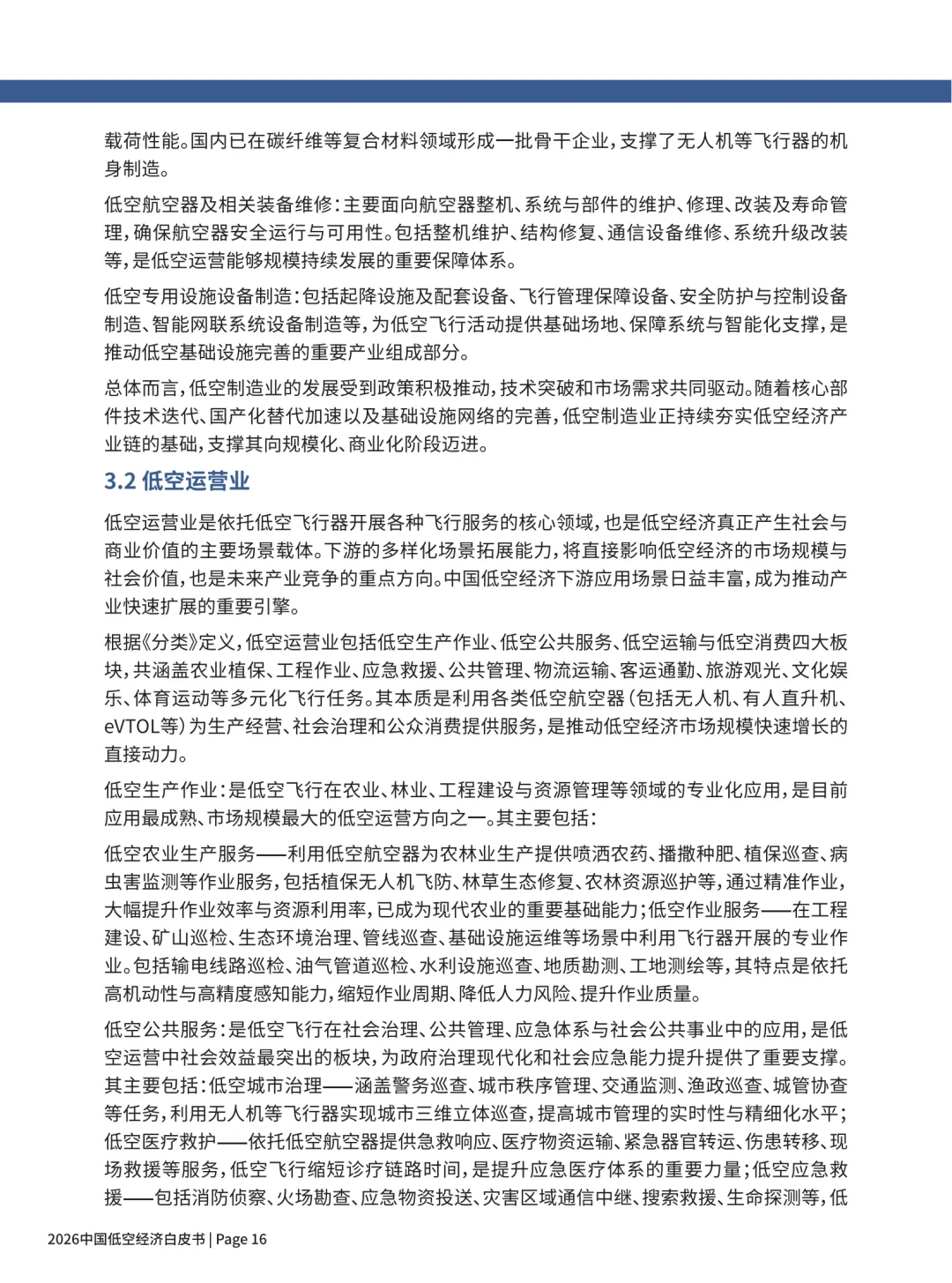 低空运营业:生产作业(农林 / 巡检)、公共服务(应急 / 城管)、低空运输(客货)、消费服务(旅游 / 娱乐)。