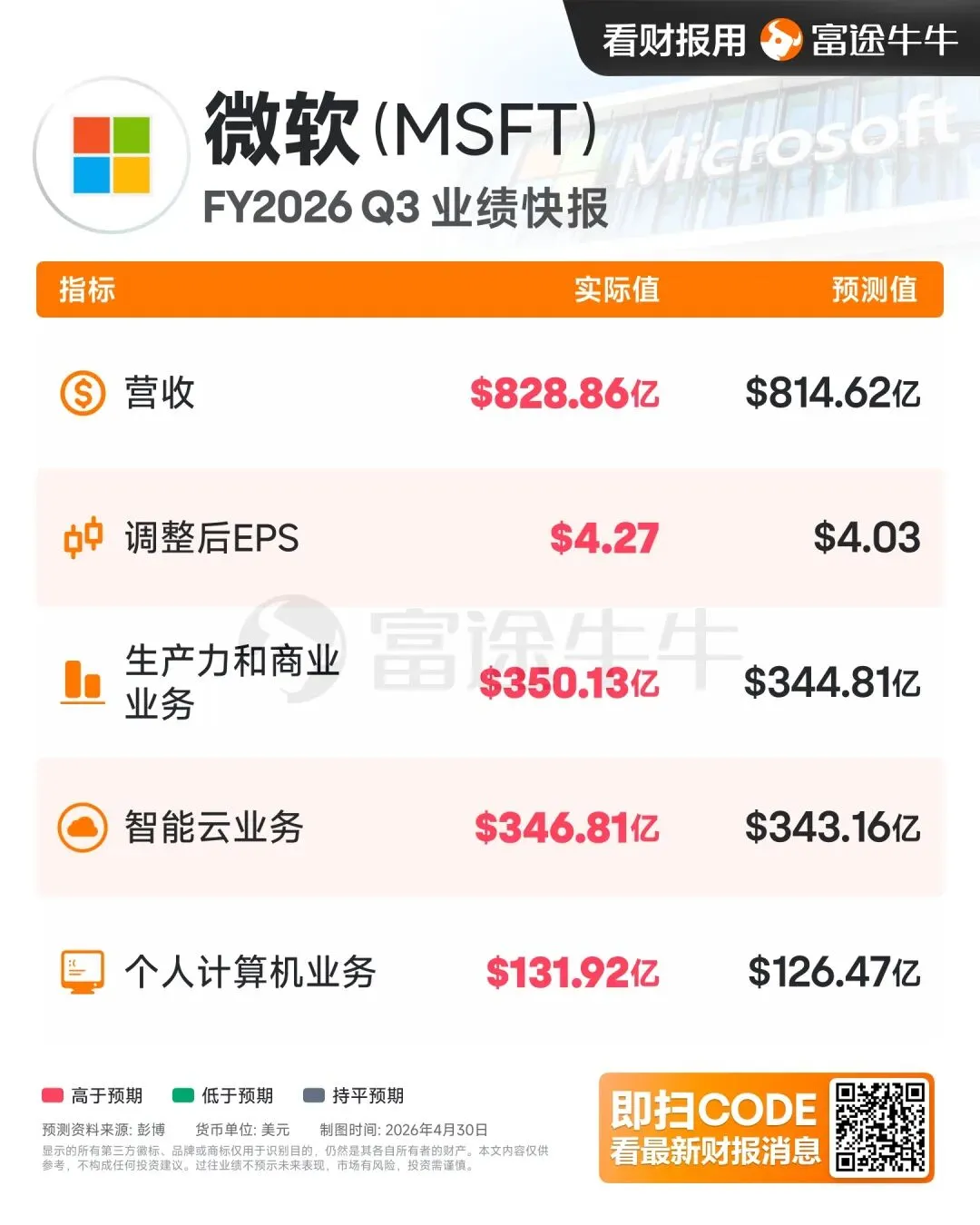 - 微软 Azure:同比 + 38%,AI 服务收入增速超 50%,Copilot 商业化加速。