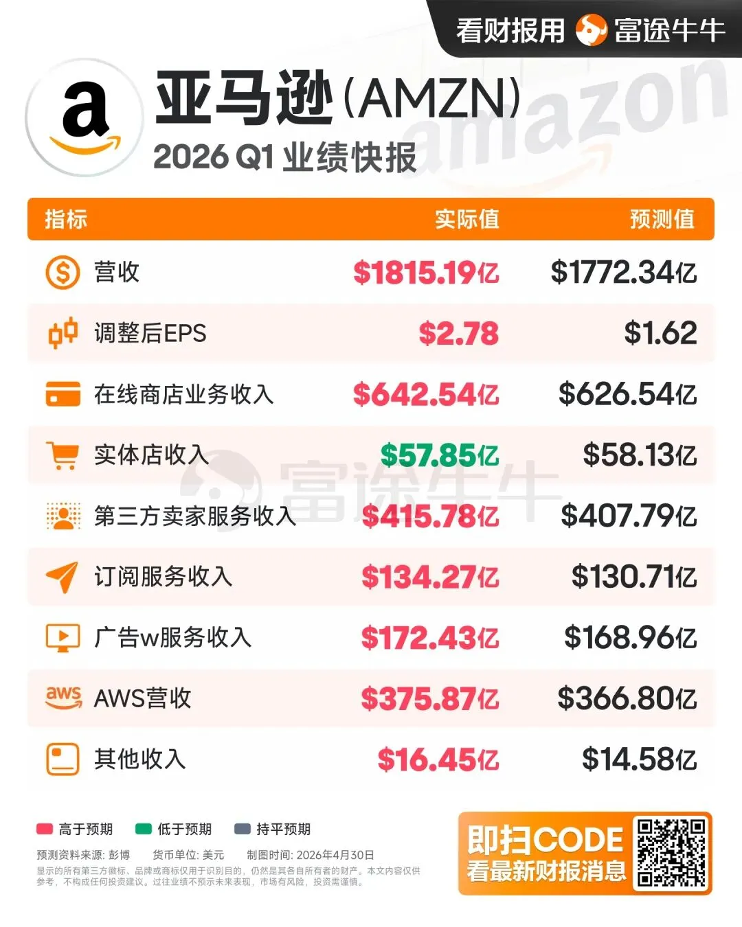- 亚马逊:1,815 亿,稳居第一,但增速最慢(14.2%),电商承压,AWS 稳定增长。