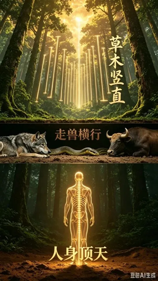 世间走兽,维度远低于灵长人类,身形皆横向匍匐、横向行走,困于平面格局、受限于低维气场,此为自然之道对低维生灵的先天限定与维度惩戒——横则被困、横则沉沦、横难破维。