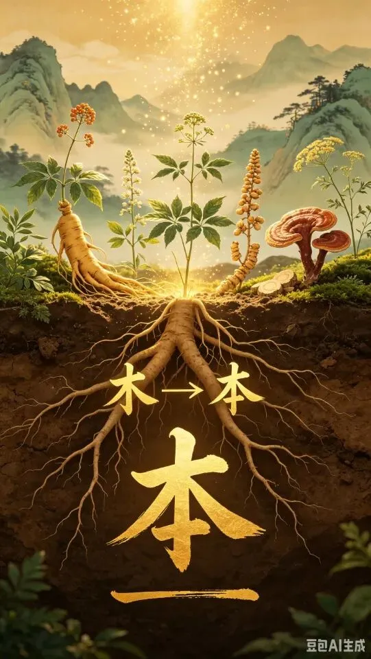 由木而生“本”,木下添一横,字形直指草木根茎深处,定义生命本源。东方草本(中医中药)养生,贵在守根本、循大道,以草木根茎为核心根基,不取浮华花果、不追表面功效,专溯生命根本中之根本,坚守滚向合道的生命本源。