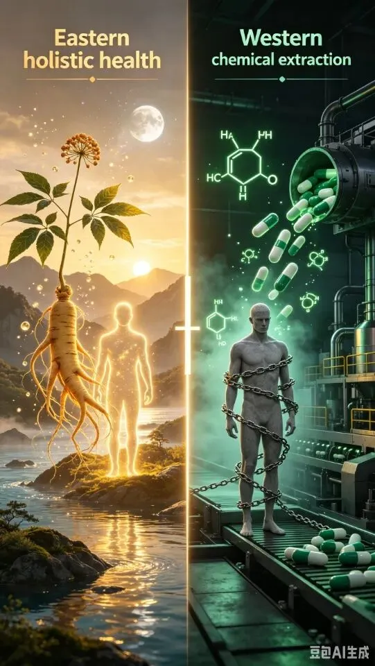 西方化工萃取养生,彻底悖离自然本源,割裂天地人合一的共生之道,与人体先天天性全然相悖,是逐末而舍本的虚妄之法,如同生灵陷入横向低维桎梏,彻底背离天道规律;东方养生坚守草本根茎核心,扎根木本大道,上循仓颉文字本源、下承中华千年养生智慧,以草木根本连通天地灵气,以自然原生之力涵养身心,守养生真根、行天地正道,回归天人合一的本然生命境界。
