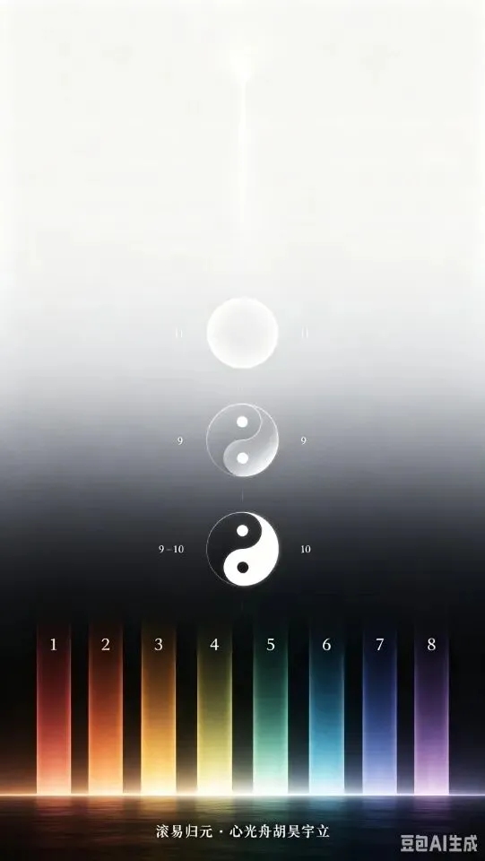 4. 11维:终极归元,破尽维度法相边界,收为不得已表法之一点,归入常寂光土、大光明藏自性海,无物质、无精神、无卦象、无分别,为宇宙终极本源,是滚易道统的终极归宿。