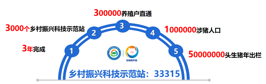 3年时间完成建设3000个乡村振兴科技示范站,直通30万养殖户,链接100万涉猪人口,服务5000万头生猪年出栏。