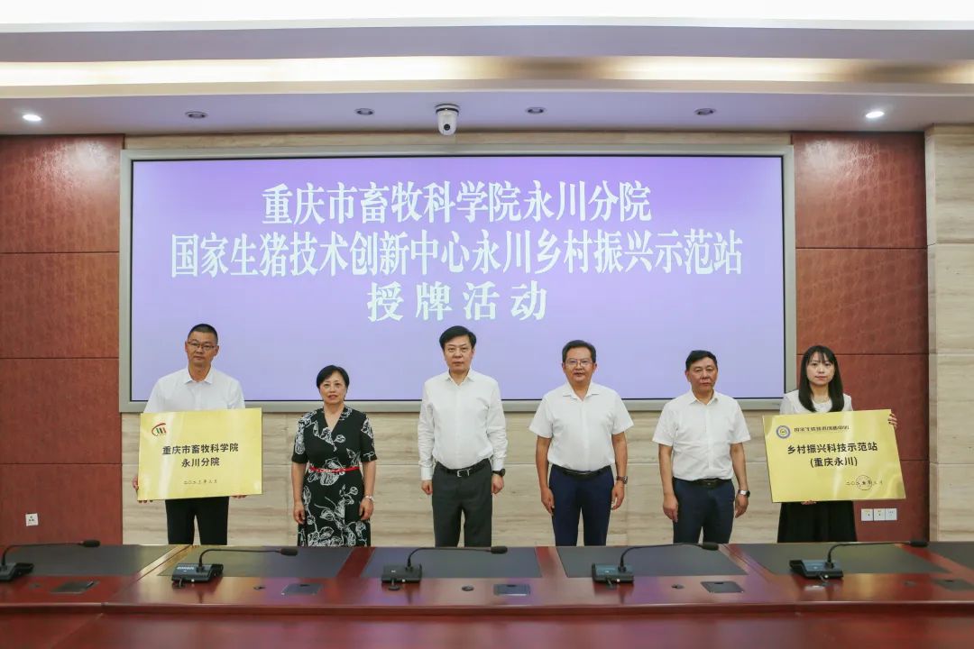 8月22日,由国家生猪技术创新中心、重庆国猪高科技集团有限公司主导建设和运行的“国家生猪技术创新中心永川乡村振兴示范站”在重庆市永川区人民政府举行揭牌仪式,重庆市永川区区委副书记、区政府区长常晓勇,永川区政府副区长任伯平,国家生猪技术创新中心主任、重庆市畜牧科学院院长刘作华,国家生猪技术创新中心副主任、重庆市畜牧科学院党委委员葛良鹏,重庆市畜牧科学院副院长黄勇出席活动。
