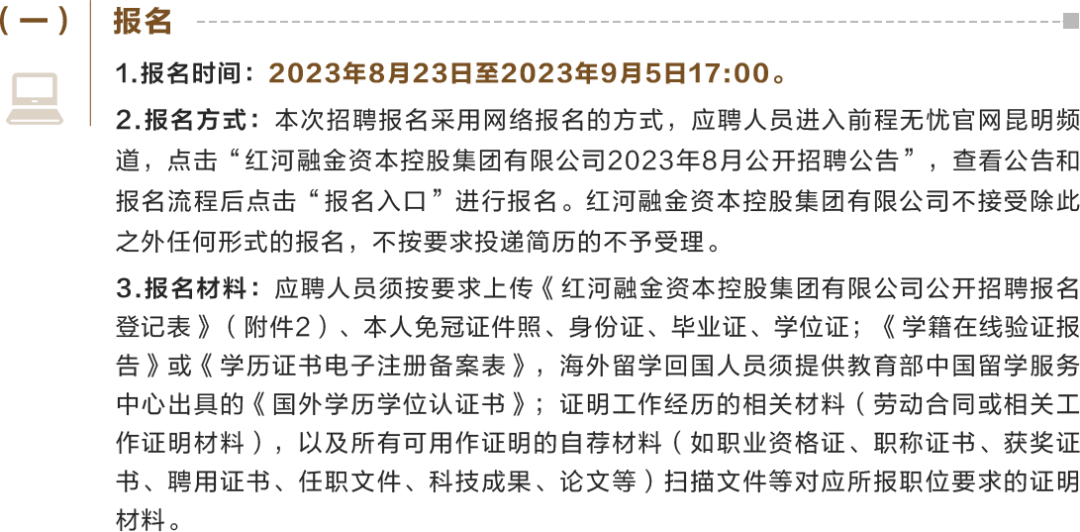 (二)红河融金资本控股集团有限公司有权根据岗位需求变化及报名情况等因素,调整、合并或取消个别岗位的招聘工作。