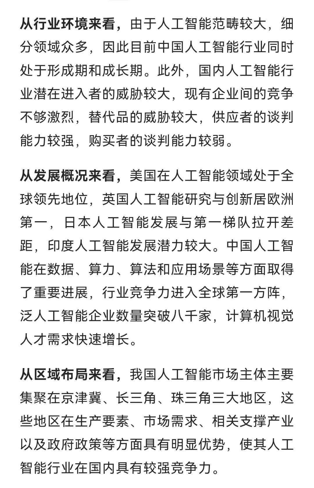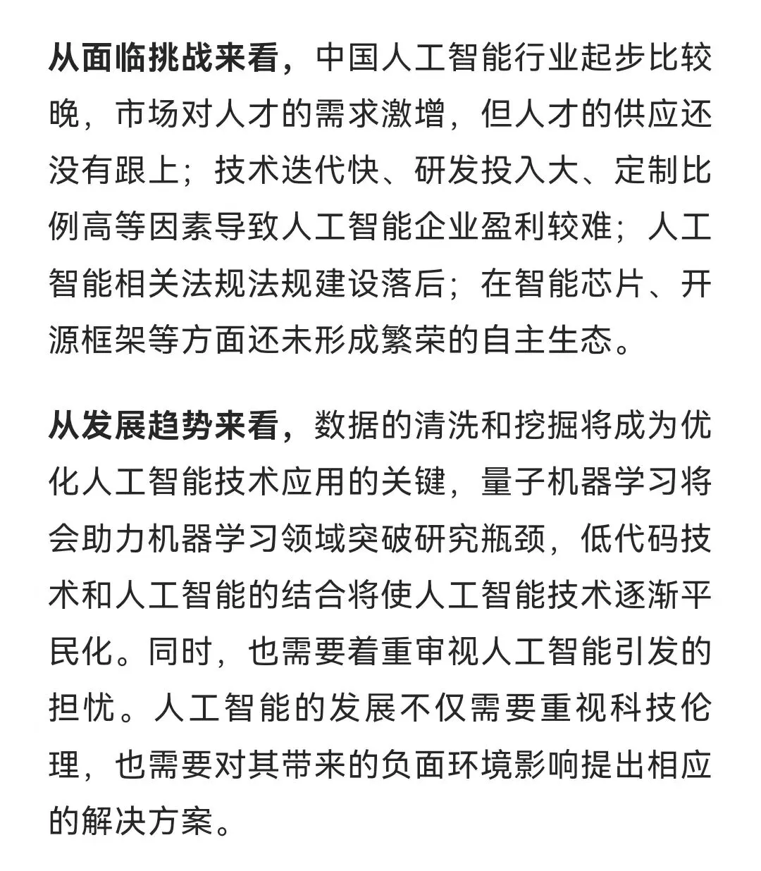 在科技日新月异的今天,人工智能已成为最具革命性的技术之一,有望对人类社会生活产生显著的影响。过去几年,人工智能相关理论研究、技术创新、软硬件升级等整体推进,极大地促进了人工智能行业的发展。进入2022年,以ChatGPT为代表的人工智能大模型火爆全球,AIGC也掀起新的热潮,公众对人工智能的关注日益加深,人工智能已然成为全球科技和产业发展的重要力量。随着人工智能商业化进程驶入快车道,一个蓬勃发展的人工智能时代正在到来。
