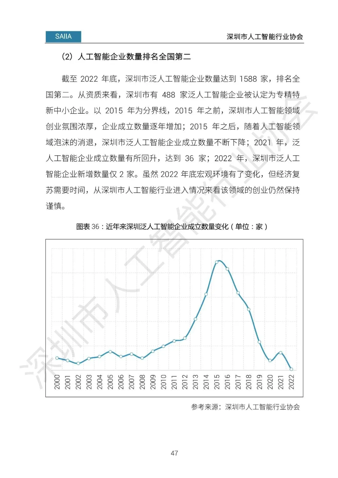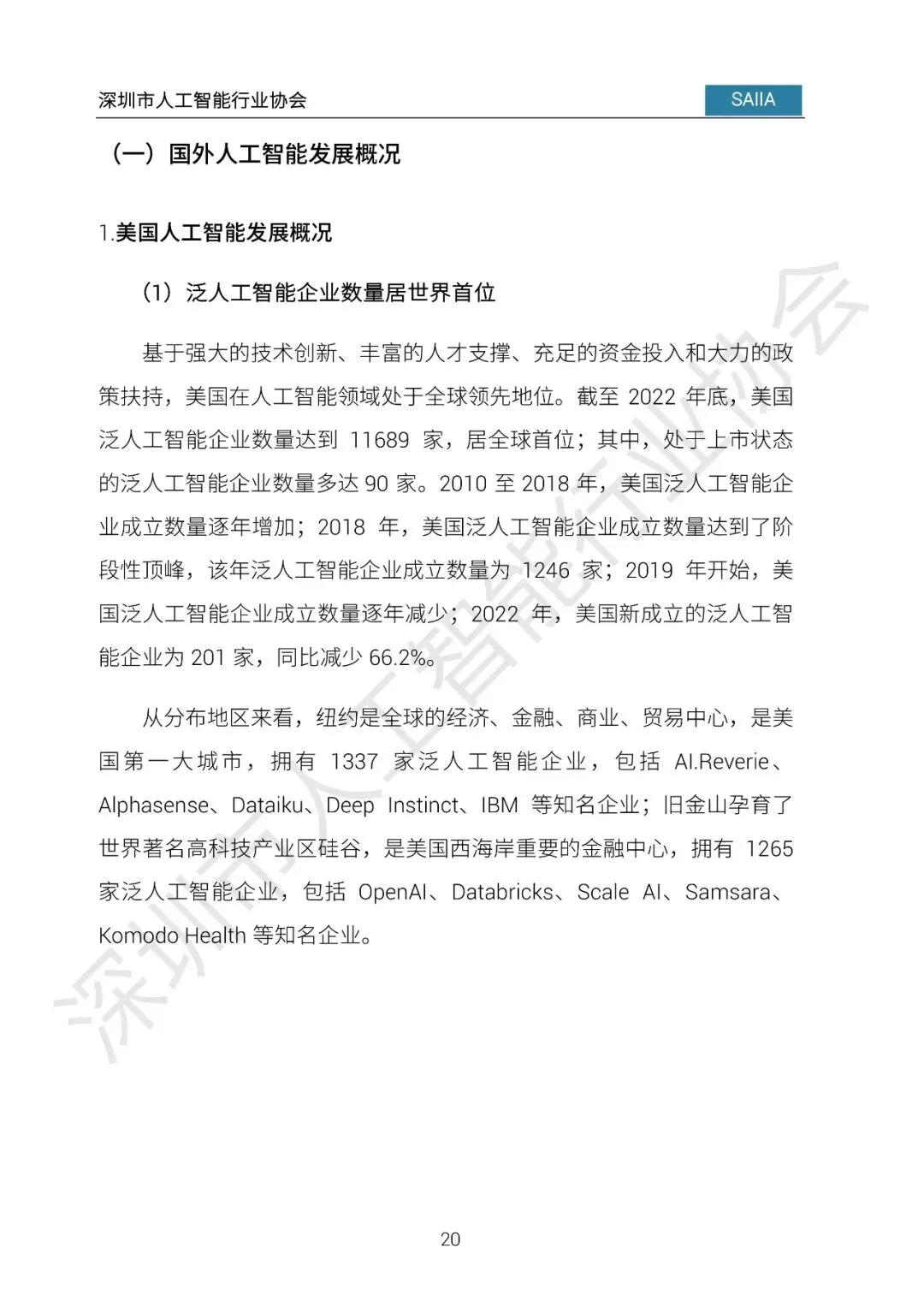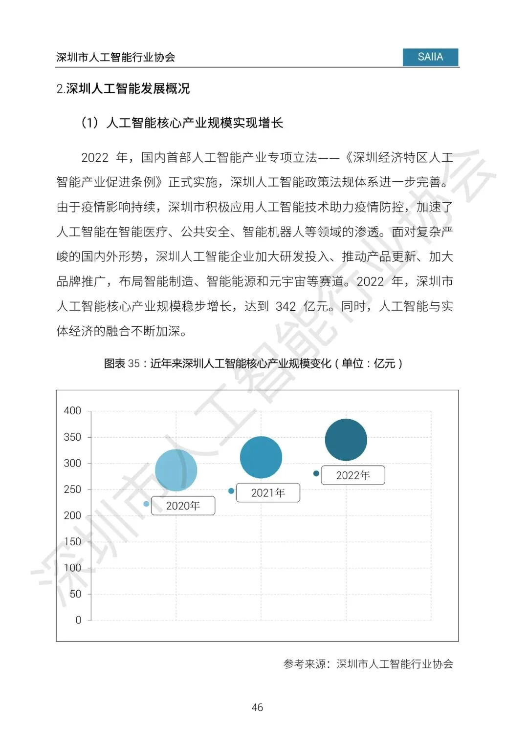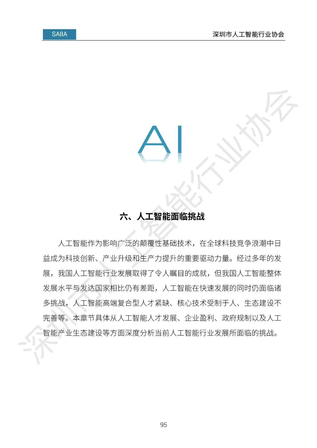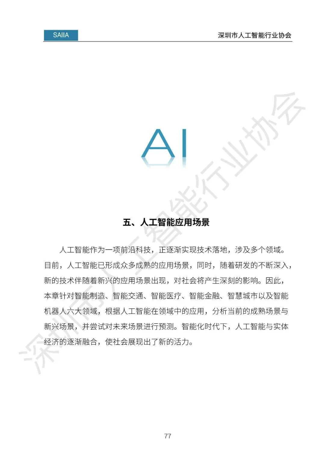 深圳市人工智能行业协会作为全国首家专注于人工智能领域的行业协会,具有行业统计、研究、咨询等职能,致力于提供高水平的智库服务。为紧跟时代步伐,响应国家战略,深圳市人工智能行业协会发挥行业统计、研究职能,就人工智能产业链、发展概况、产业集群、应用场景、面临挑战以及发展趋势等方面进行深入研究,形成了《2023人工智能发展白皮书》。