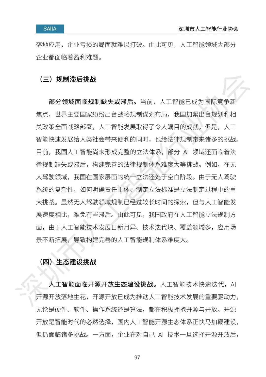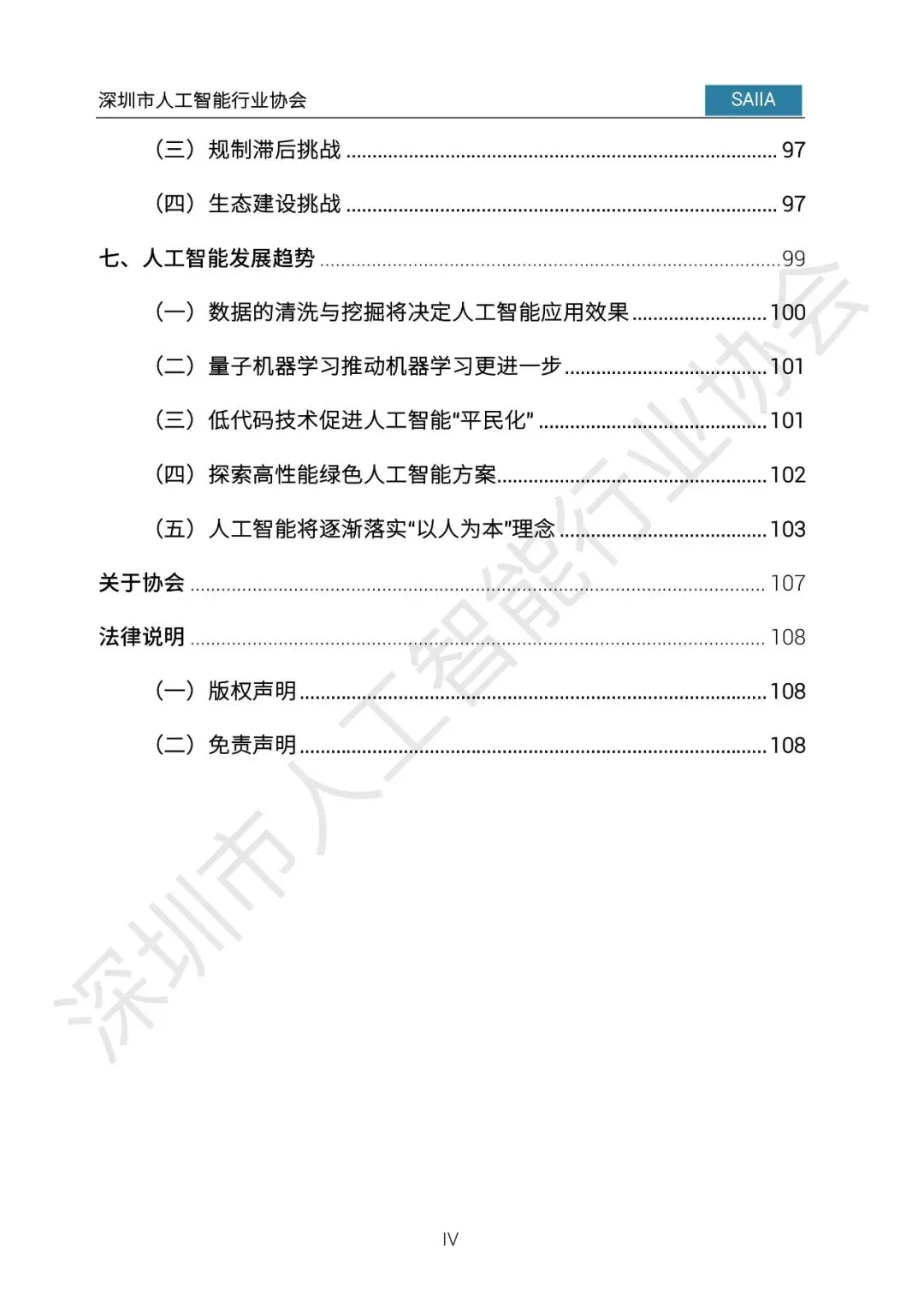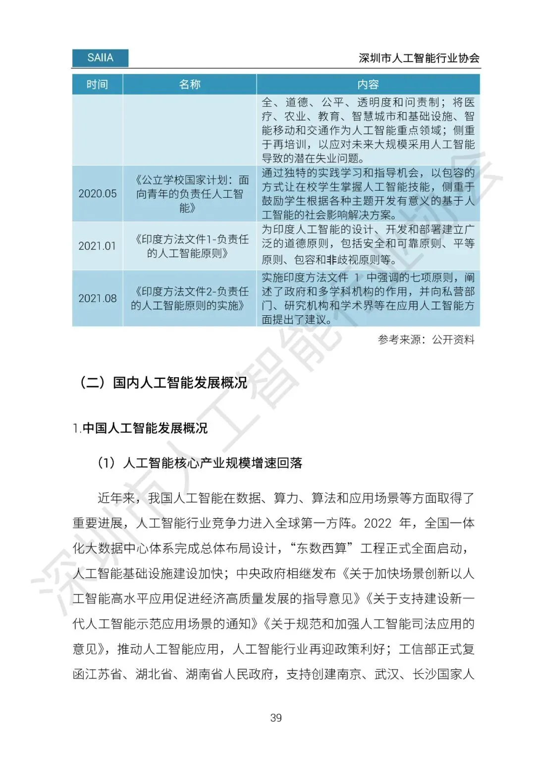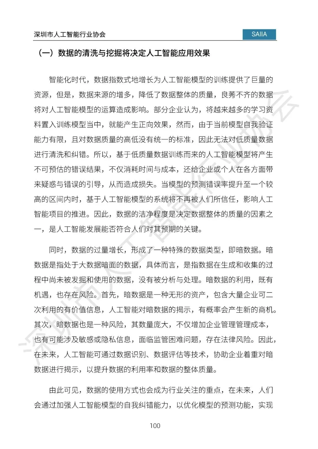 深圳市人工智能行业协会作为全国首家专注于人工智能领域的行业协会,具有行业统计、研究、咨询等职能,致力于提供高水平的智库服务。为紧跟时代步伐,响应国家战略,深圳市人工智能行业协会发挥行业统计、研究职能,就人工智能产业链、发展概况、产业集群、应用场景、面临挑战以及发展趋势等方面进行深入研究,形成了《2023人工智能发展白皮书》。