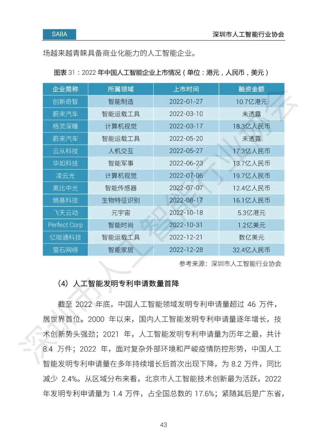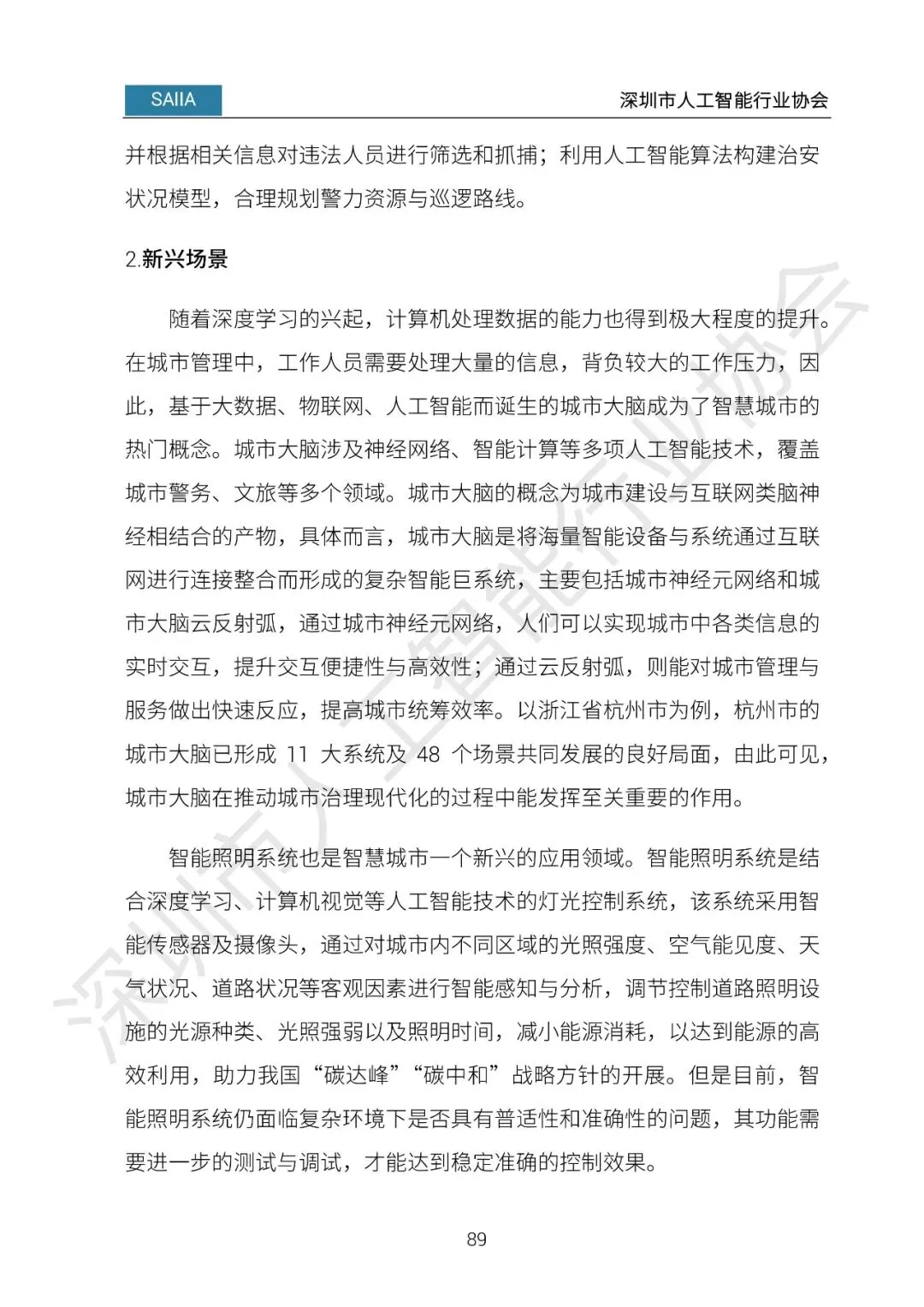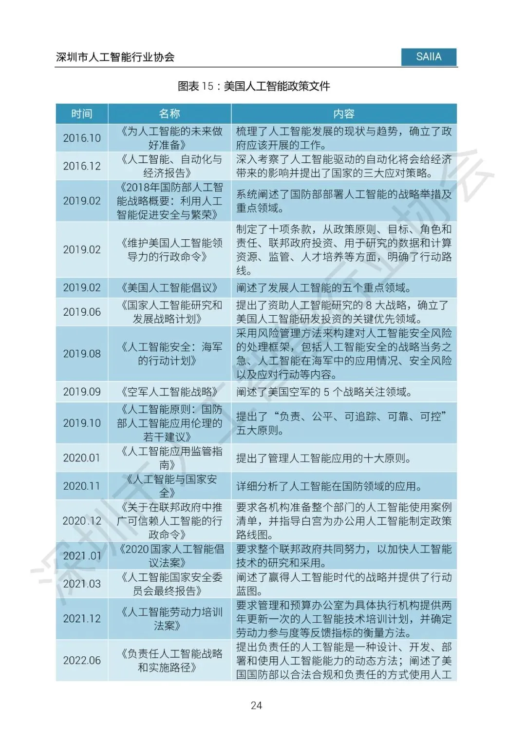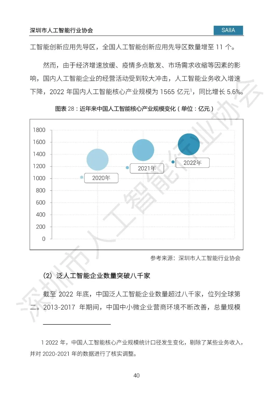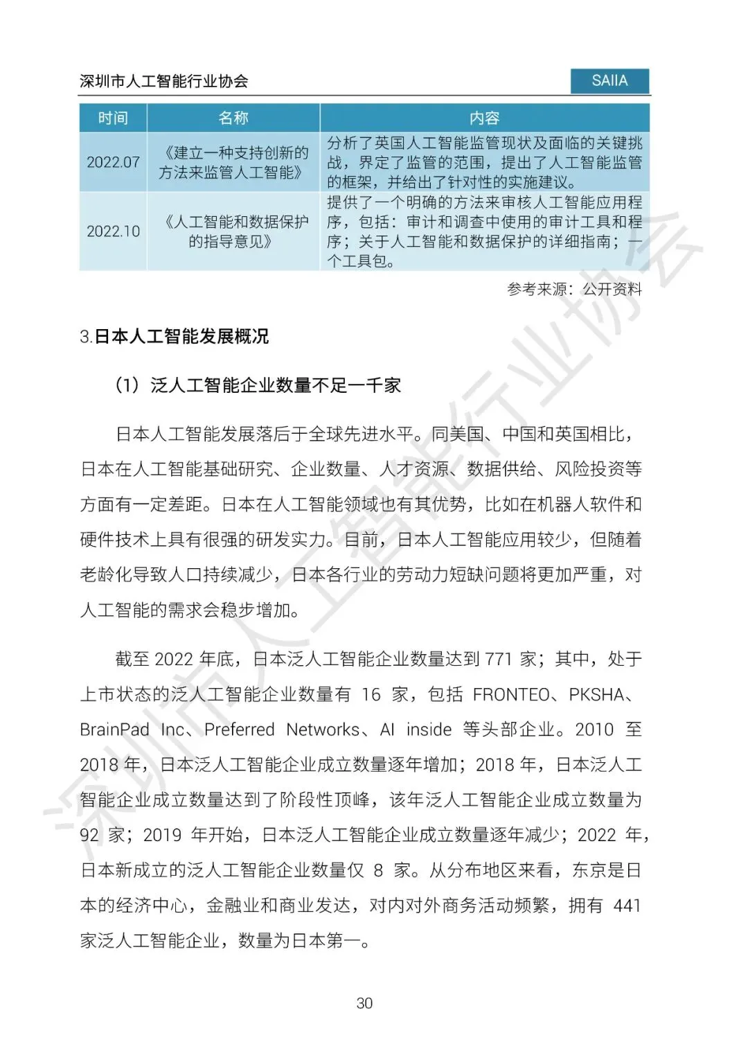 深圳市人工智能行业协会作为全国首家专注于人工智能领域的行业协会,具有行业统计、研究、咨询等职能,致力于提供高水平的智库服务。为紧跟时代步伐,响应国家战略,深圳市人工智能行业协会发挥行业统计、研究职能,就人工智能产业链、发展概况、产业集群、应用场景、面临挑战以及发展趋势等方面进行深入研究,形成了《2023人工智能发展白皮书》。