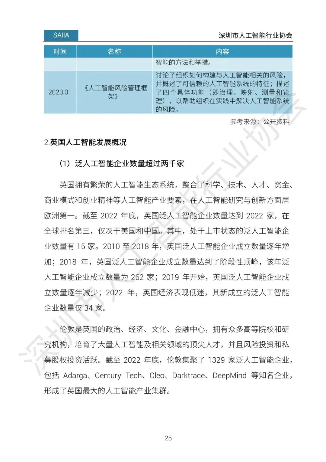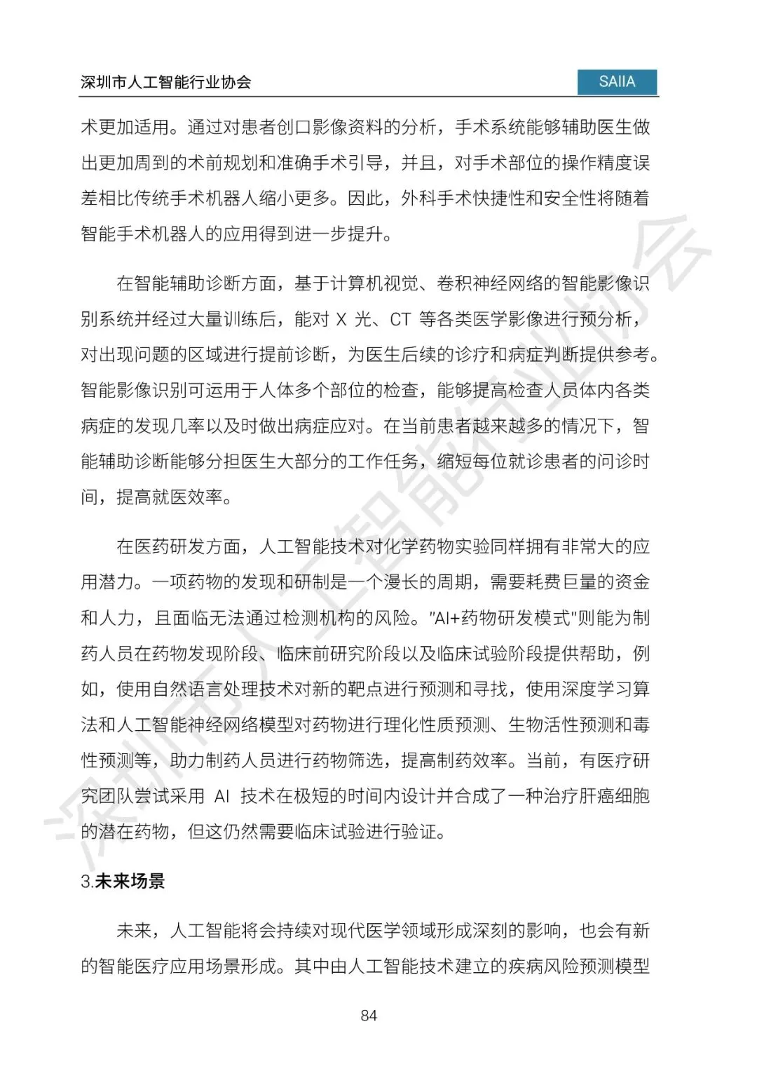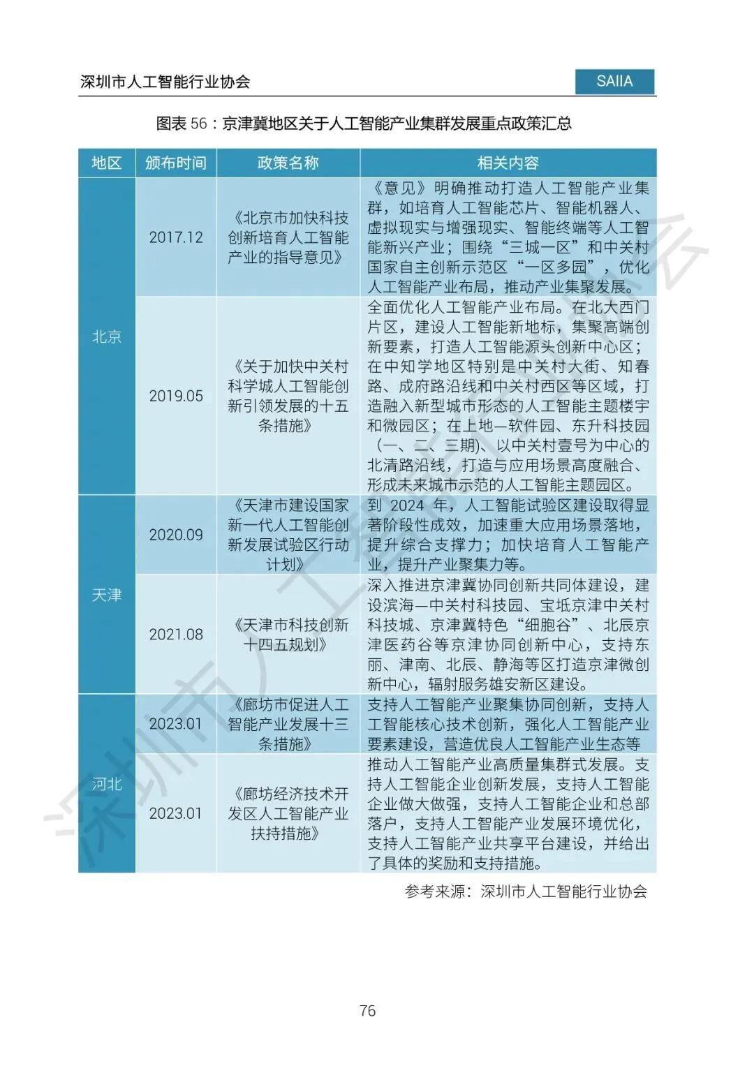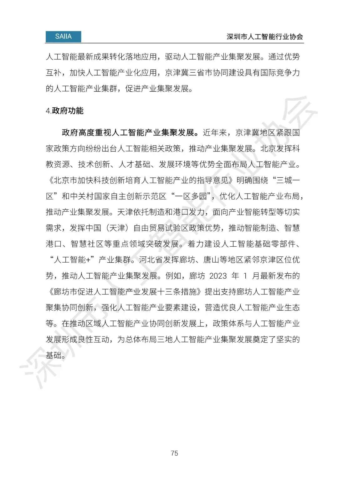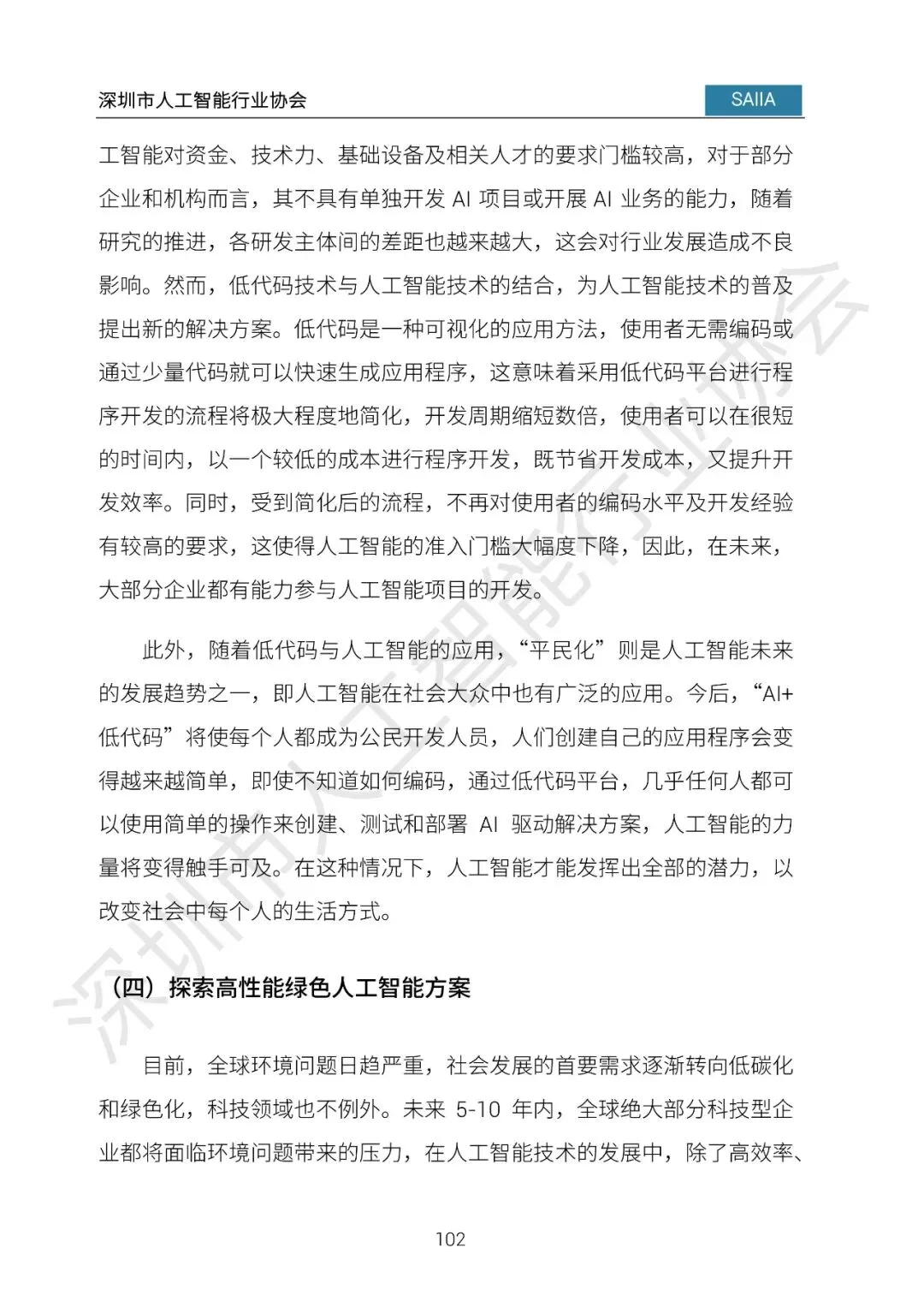 深圳市人工智能行业协会作为全国首家专注于人工智能领域的行业协会,具有行业统计、研究、咨询等职能,致力于提供高水平的智库服务。为紧跟时代步伐,响应国家战略,深圳市人工智能行业协会发挥行业统计、研究职能,就人工智能产业链、发展概况、产业集群、应用场景、面临挑战以及发展趋势等方面进行深入研究,形成了《2023人工智能发展白皮书》。