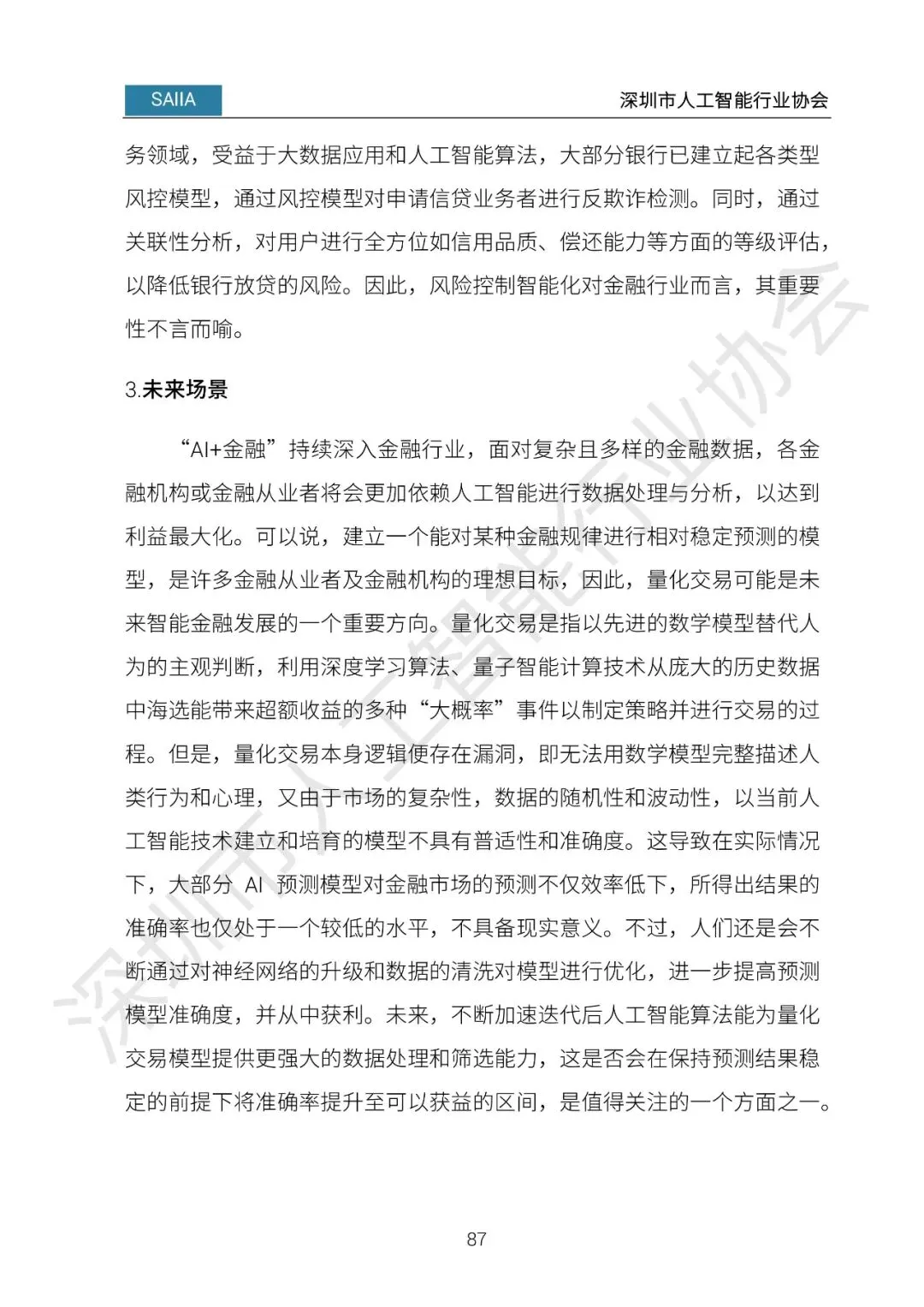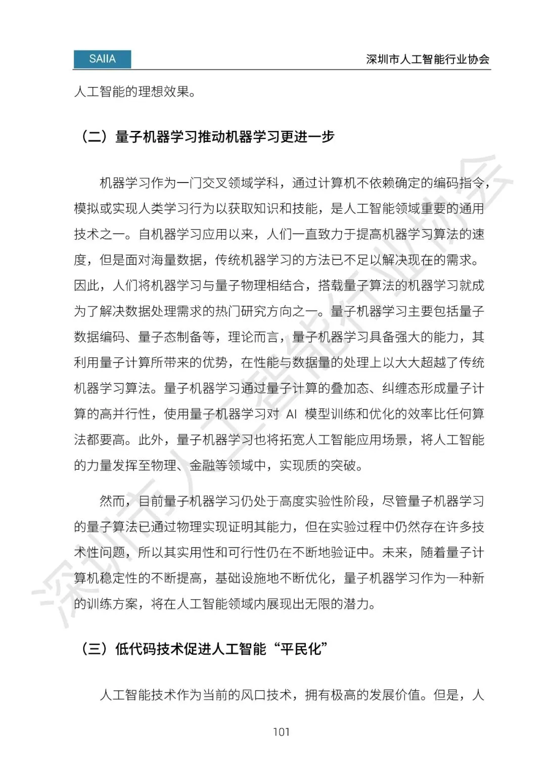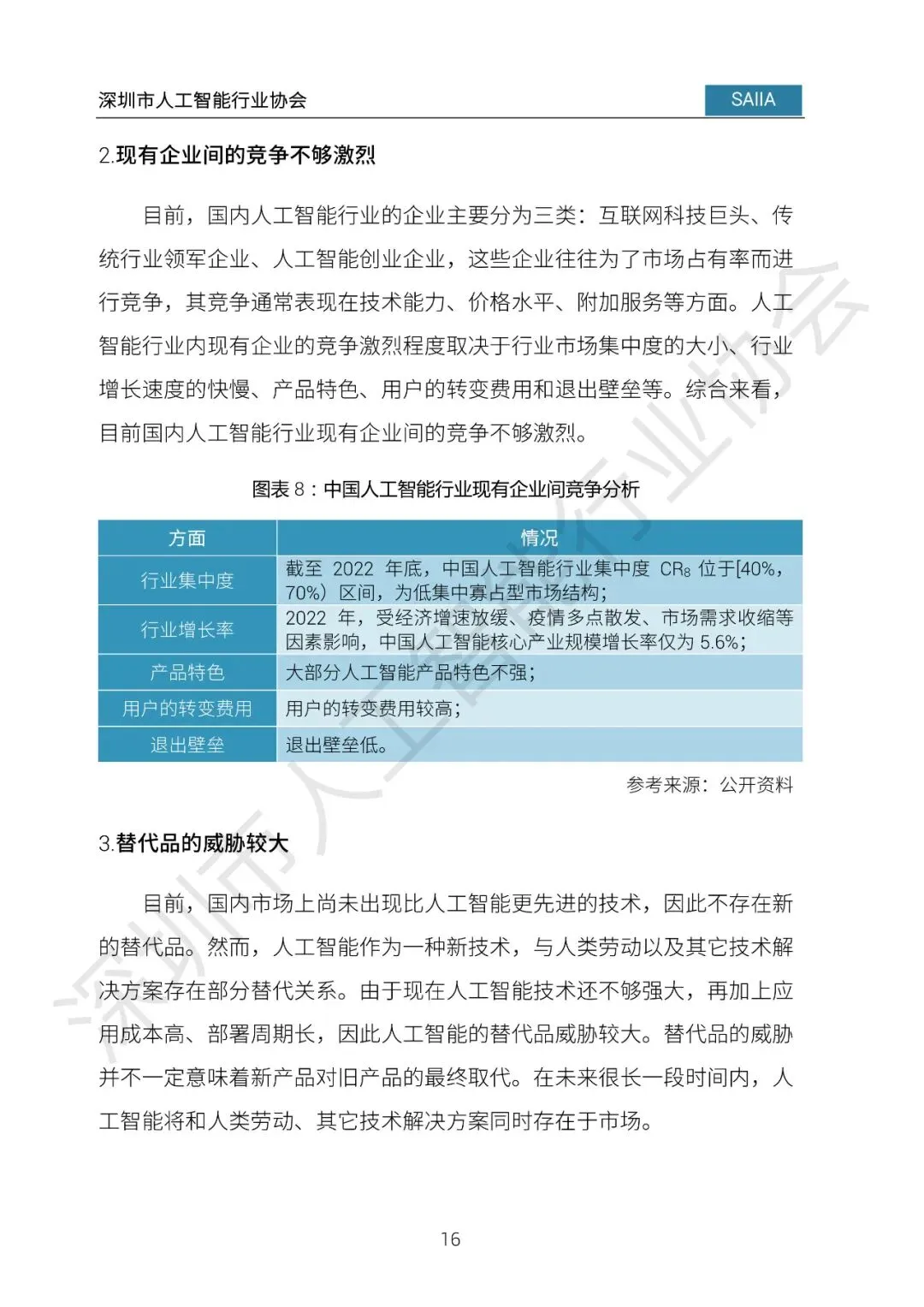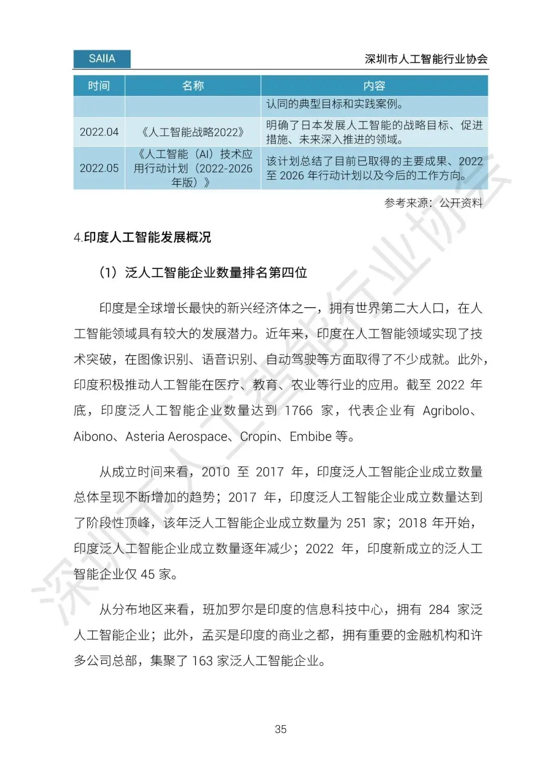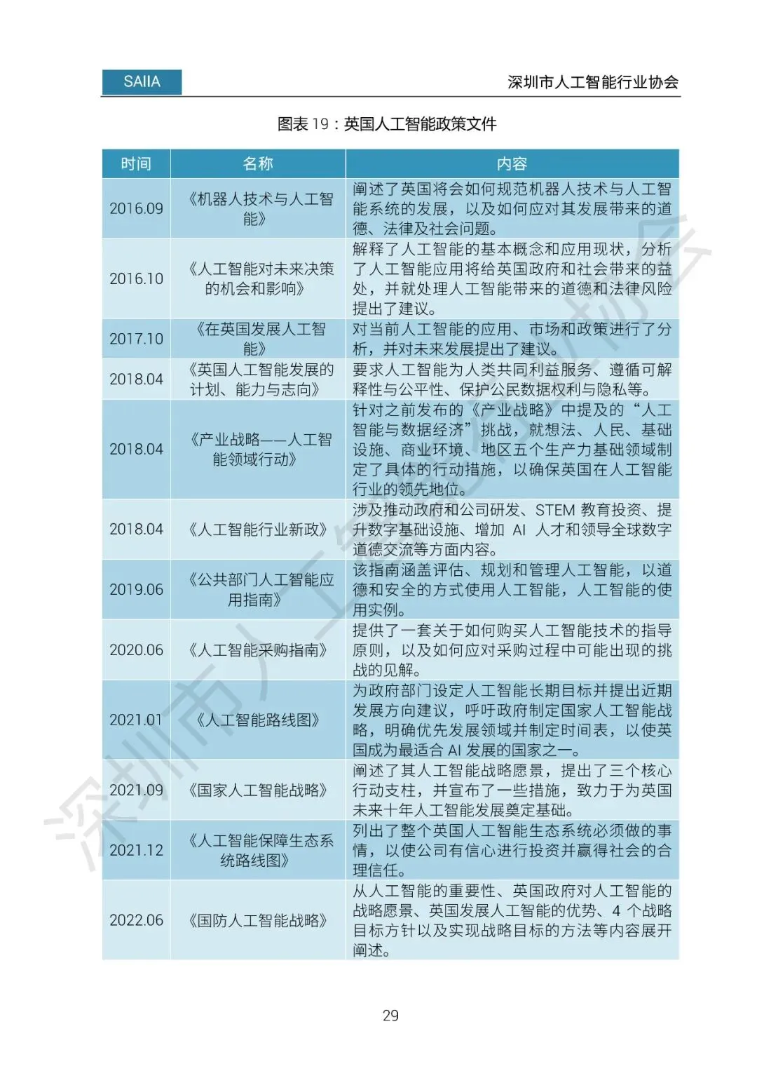深圳市人工智能行业协会作为全国首家专注于人工智能领域的行业协会,具有行业统计、研究、咨询等职能,致力于提供高水平的智库服务。为紧跟时代步伐,响应国家战略,深圳市人工智能行业协会发挥行业统计、研究职能,就人工智能产业链、发展概况、产业集群、应用场景、面临挑战以及发展趋势等方面进行深入研究,形成了《2023人工智能发展白皮书》。