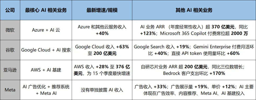 有足够强的算力和模型能力,能承接需求;有足够深的软件和企业入口,能把 AI 嵌入真实工作流;有足够强的成本控制和资本配置能力,能把巨额投入变成可持续回报。