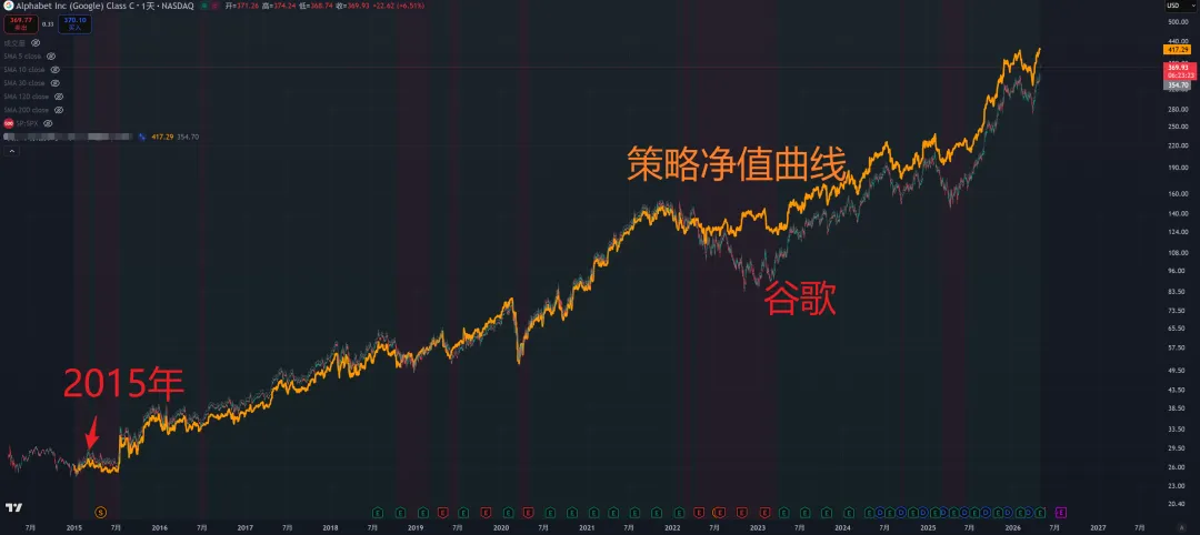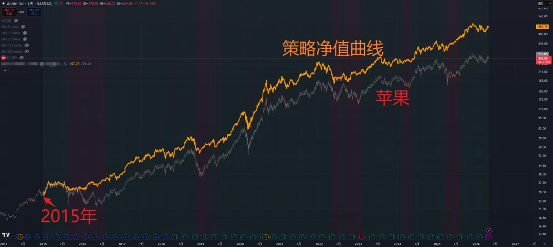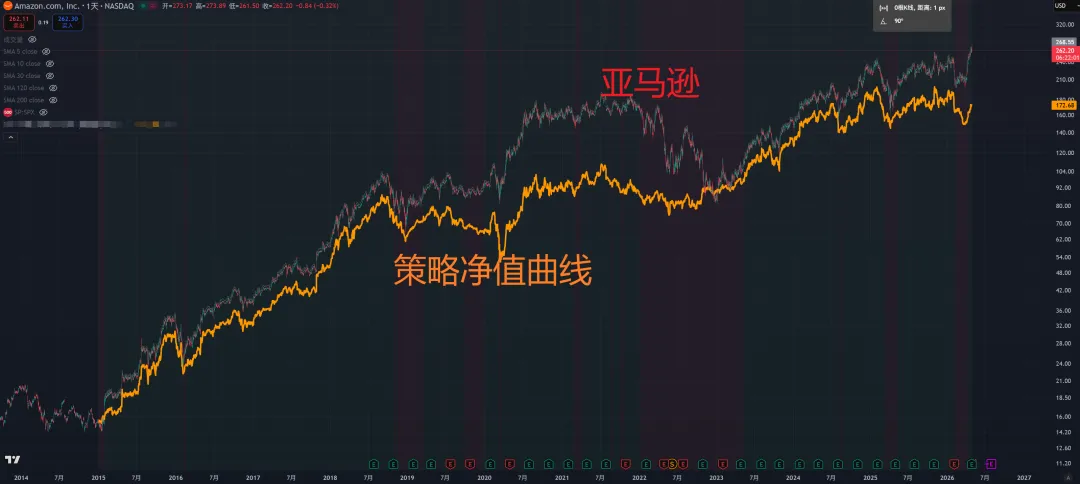 说到科技巨头,我们根据策略交易科技巨头。在涨幅基本不输于“买入并持有”的情况下,大幅减小回撤:
