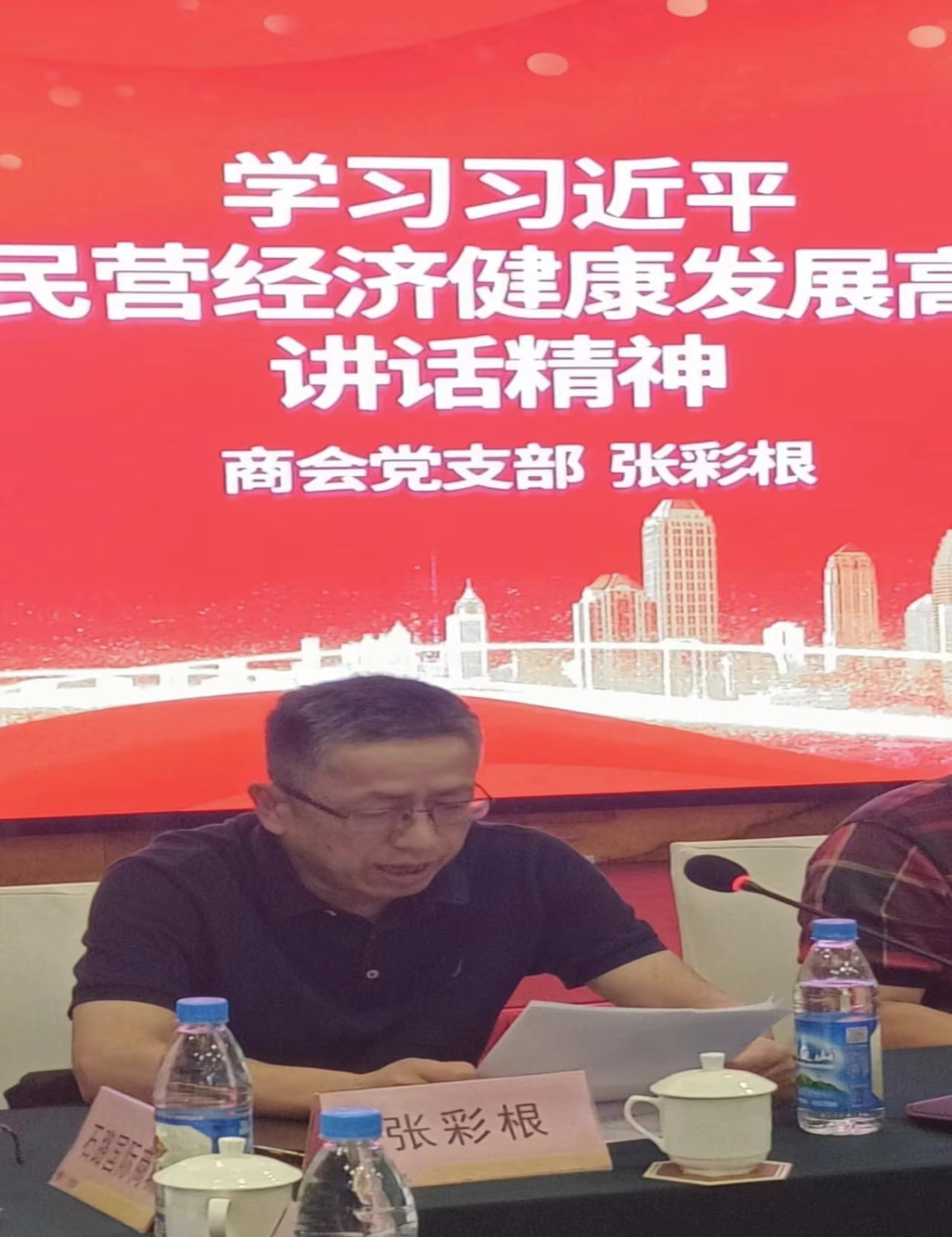 首先,商会党支部成员、苏州中辰实业有限公司总经理张彩根带领全体参会人员学习了习近平总书记在看望参加全国政协十四届一次会议民建、工商联界委员发表的《正确引领民营经济健康发展高质量发展》讲话精神,并宣读了新华社评论员题为《实现民营经济健康发展、高质量发展》的评论文章。