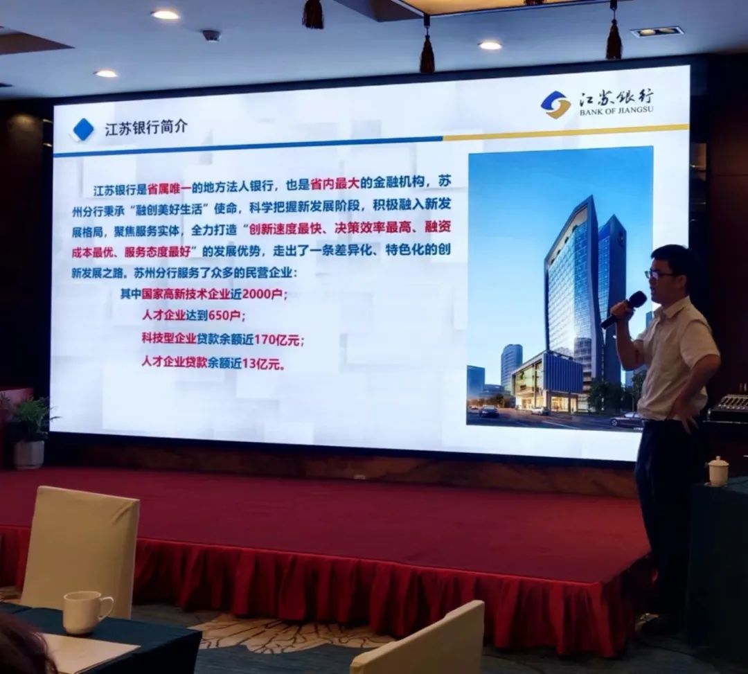 江苏银行苏州分行吴中支行在会上作了特色惠企金融政策讲座。