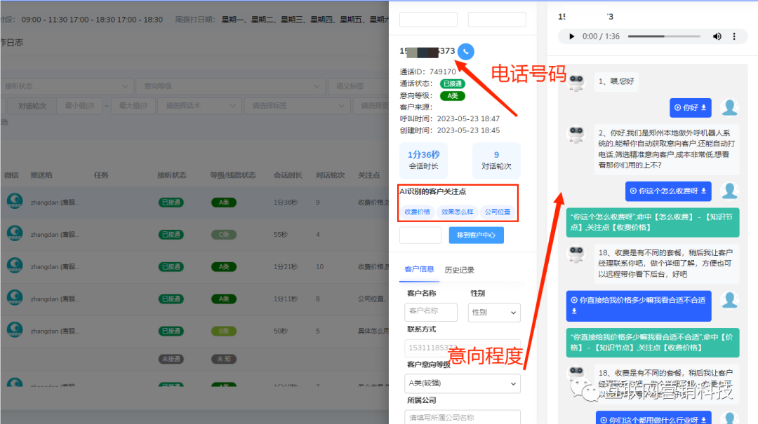 电销机器人后台有意向标签设置,什么样的客户划定为A类、B类、C类等都有明确的界定,例如:客户问到 多少钱?公司在哪? 或者触发多个肯定词,如:可以、行、好等,触及多个这样的敏感问题时,就会直接判定为A类意向客户,就是类似这样的判定。电销机器人可以智能分类客户,进行推送到绑定的微信上。
