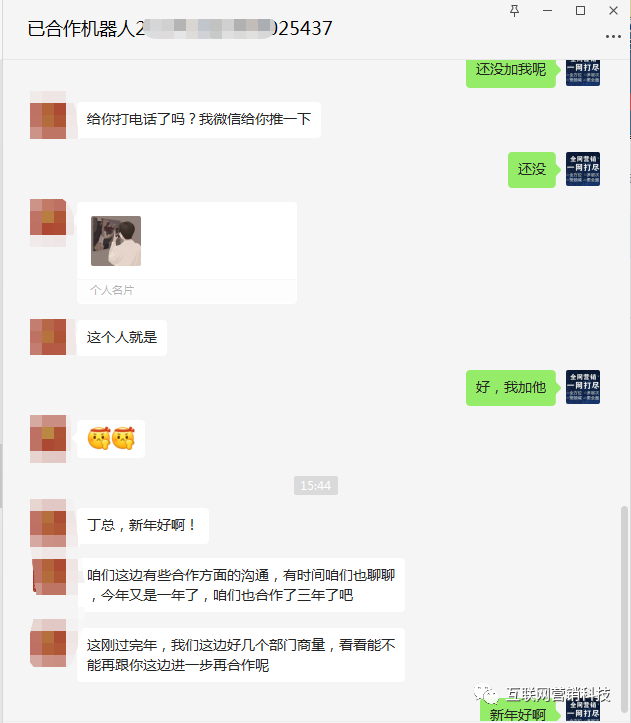 客户反馈-合作三年的老客户不断推荐朋友使用机器人获客