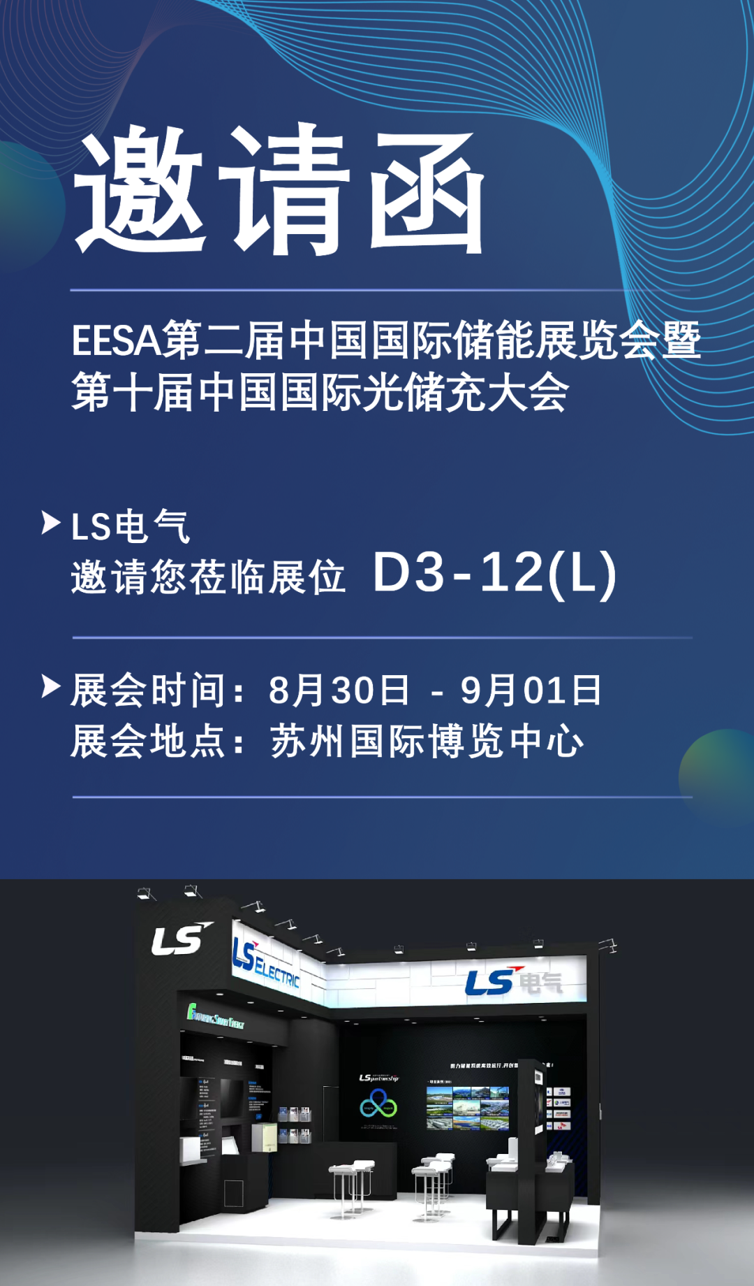 2023年8月30日-9月01日,EESA第二届中国国际储能展览会将在苏州国际博览中心举行。LS电气邀您共赴本次展会,展示储能应用前沿技术和创新产品。