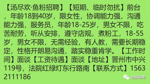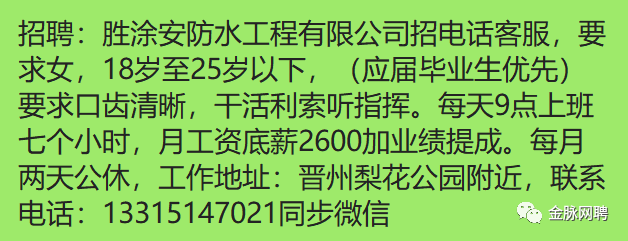 2.网络求职有风险,本号仅代发招聘信息方便大家获取信息,不对求职结果或问题负责,信息真伪请注意甄别。若有不实,请及时向小编反映;
