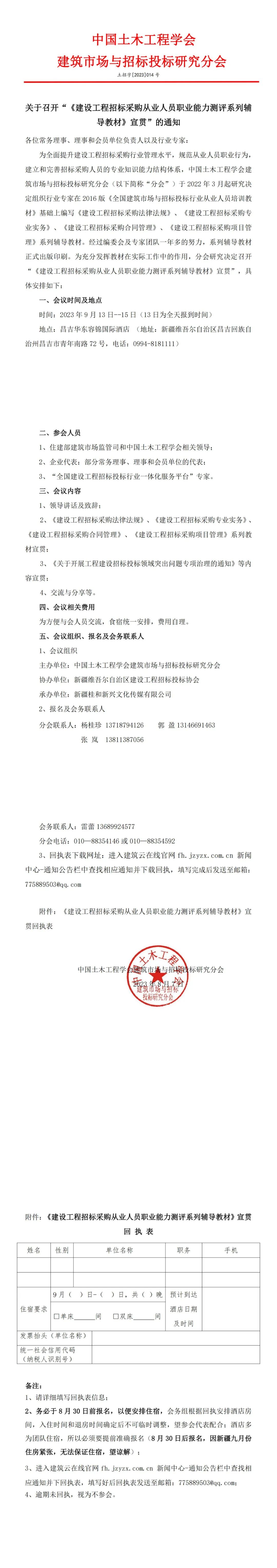 关于参加建设工程招标采购从业人员职业能力测评系列辅导教材宣贯会的通知