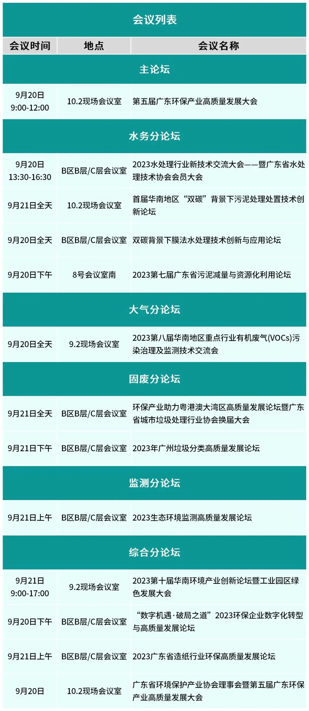 作为一年一度的华南环保行业交流盛会,中国环博会广州展深挖行业资源,升级展会内容配套,全力促进业内商贸交流与资讯分享,在为期3天的展期中,举办“第五届广东环保产业高质量发展大会”等20余场精彩纷呈、聚焦行业热点的专题论坛、配套活动贯穿展会,大咖汇聚,多元思维跨界,深化行业交流与合作。此外展会同期还将举办广东环保产业发展情况发布会、新技术新产品发布会、高校院所科技成果发布会、人才需求发布会、污染防治市场需求发布会、大型环保企业采购合作发布会等一系列行业发布会。