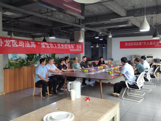 为贯彻落实省、市、区关于开展“万人助万企及企业公益法治体检”活动安排,帮助企业纾困解难,营造良好的营商环境,2023年8月25日,卧龙区司法局助企干部带领律师服务团深入企业开展助企法律服务活动。