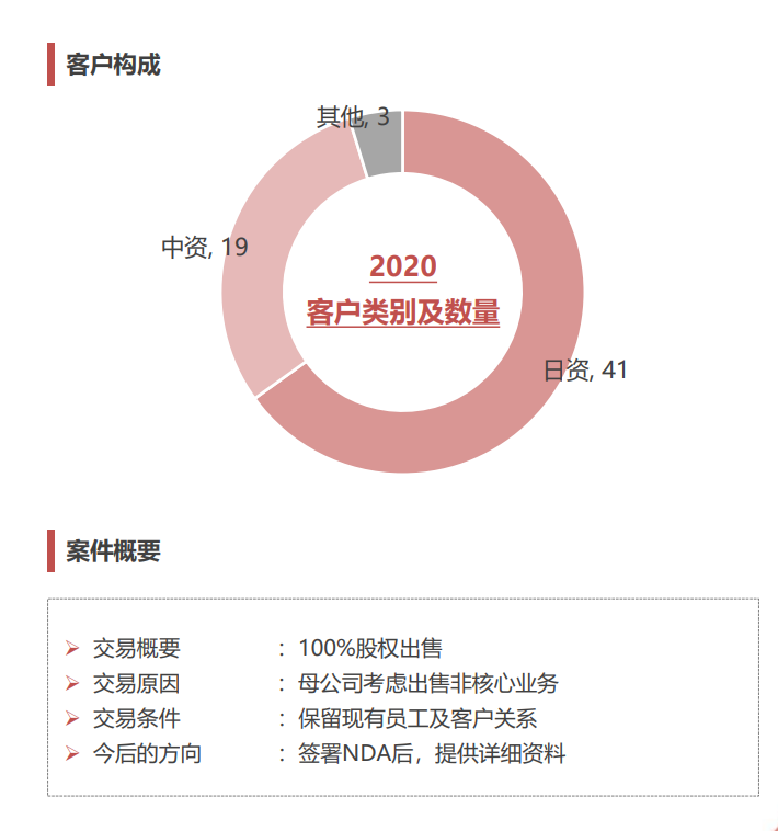 由于母公司考虑出售非核心业务,现欲百分百股权出售。