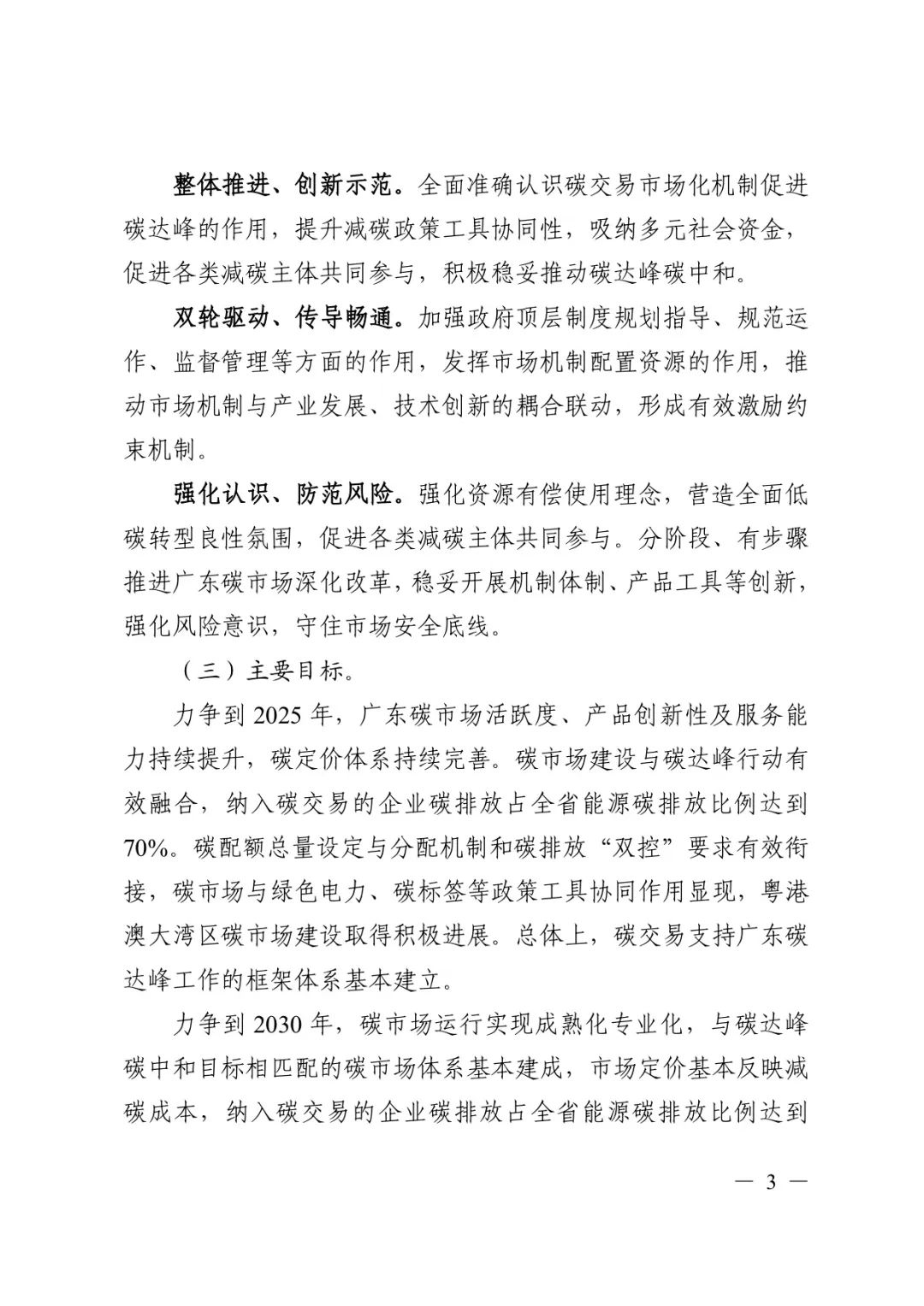 力争到 2030 年,市场定价基本反映减碳成本,纳入碳交易的企业碳排放占全省能源碳排放比例达到75%。