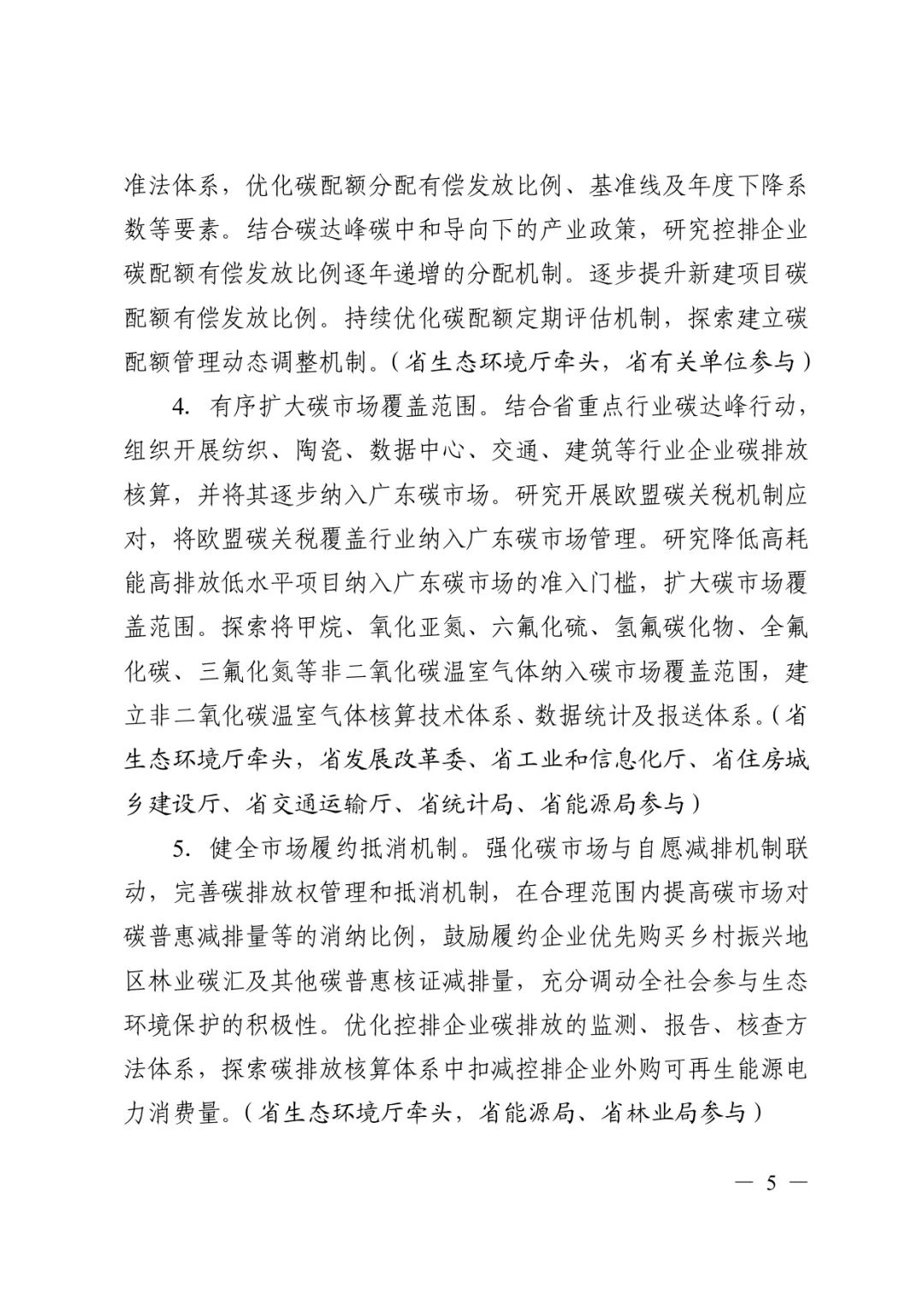 有序扩大碳市场覆盖范围。结合省重点行业碳达峰行动,组织开展纺织、陶瓷、数据中心、交通、建筑等行业企业碳排放核算,并将其逐步纳入广东碳市场。