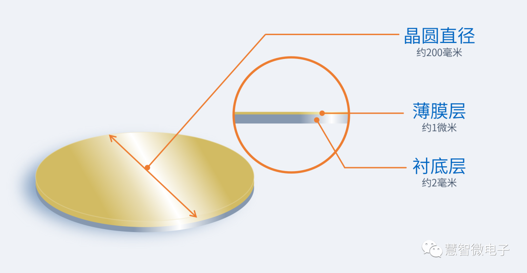 薄膜工艺就是指在半导体晶晶圆片上沉积各种材料,以实现不同电路功能或特性的过程。和前面几个工艺步骤是按工艺过程来命名不同,这一步骤命名方式是按材料的“状态”来命名的。这个命名甚至让人看起来有些费解,从示意图看,半导体器件看上去都是厚厚的一个个器件,哪来的薄膜?其实为了理解方便,半导体器件结构在图示时经过了抽象和不等比例的放大,实际中半导体器件在晶圆片上非常薄的一层内实现。通常厚度在1微米以内。对于一个8英寸(200毫米)的晶圆片来说,1微米的厚度薄膜的制作,相当于在200米直径的操场上,均匀的堆积1毫米厚的沙子。
