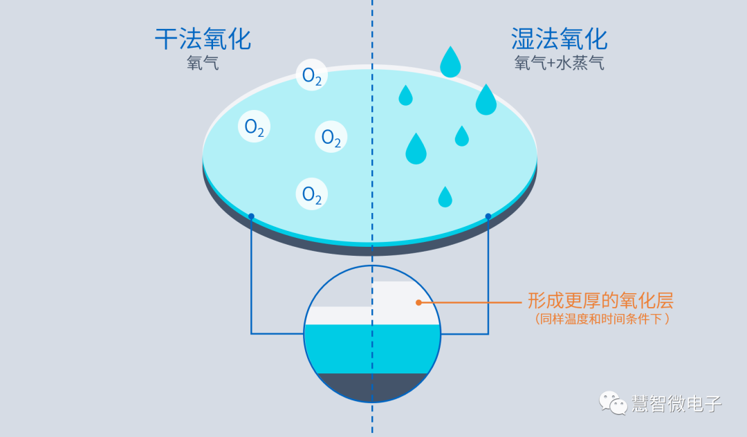 - 湿法使用纯氧和水蒸汽,形成较厚、密度较低的氧化层,但生长速度较快。