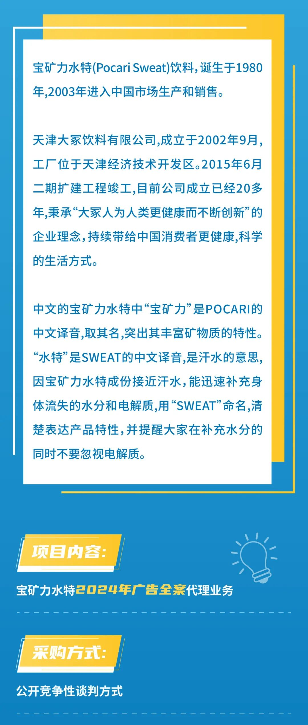 宝矿力水特2024年广告全案代理业务比稿招标