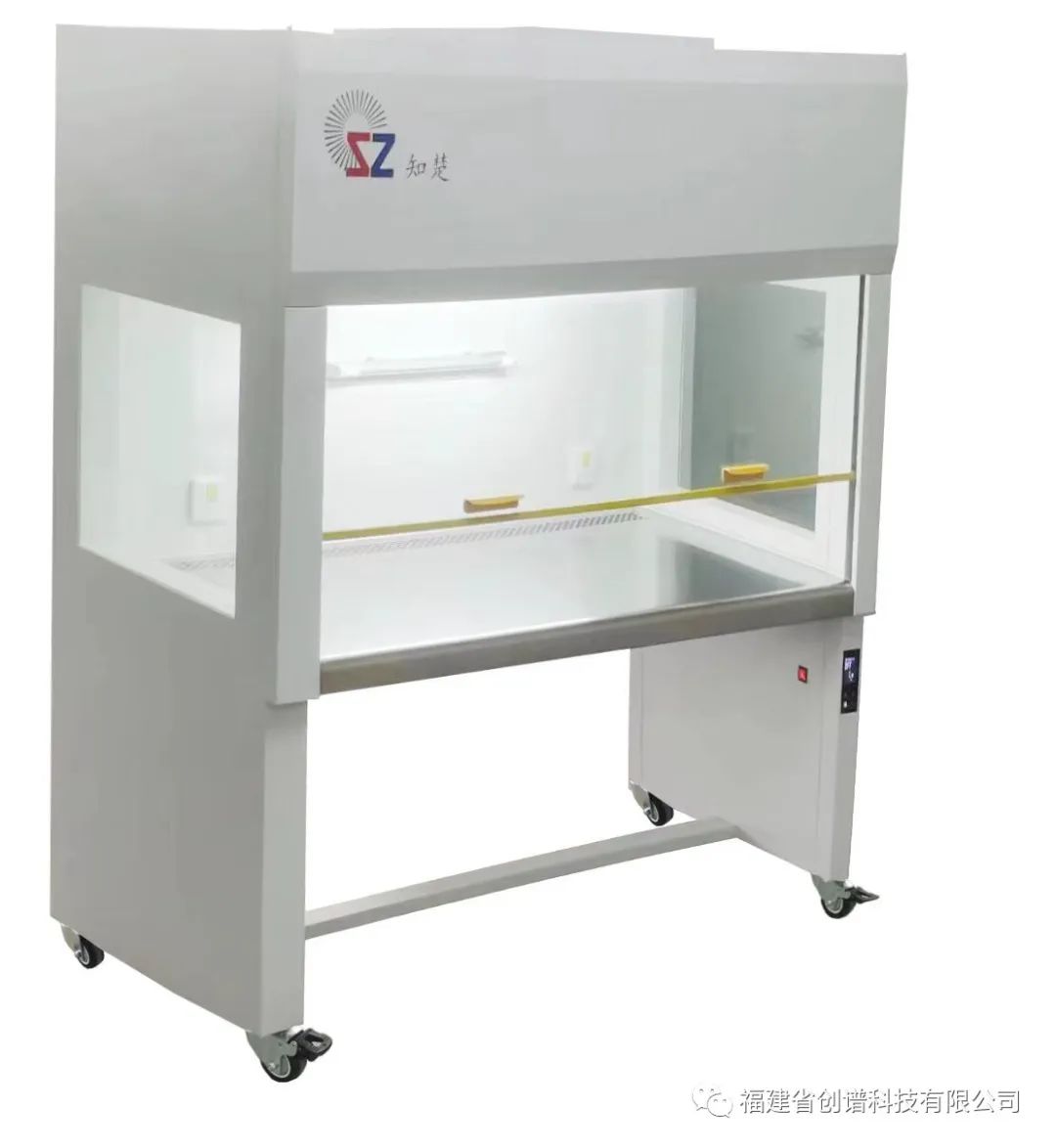 2、使用前15-20分钟开紫外灯,对工作区域进行照射杀菌,将细菌、病毒全部杀死。为避免物品过多而导致紫外灭菌不彻底,台面平时只需放移液器、75%酒精喷壶、75%酒精棉、接种器、酒精灯、记号笔和打火机等。