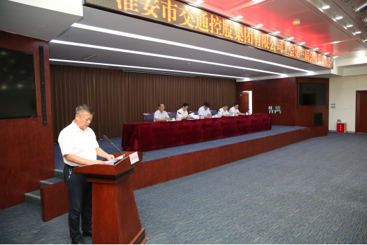 8月24日下午,淮安市交通控股集团有限公司工会第三届会员代表大会顺利召开,集团党委书记、董事长耿良道,总经理庄德军,副总经理沈剑、刘臣志出席会议,大会由副总经理姜树旺主持,集团本部及各子企业会员代表共61人参加大会。