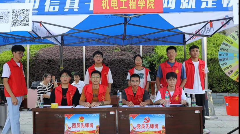 8月23日,秋风送爽,丹桂飘香,初秋时节机电工程学院院迎来了2023级新生。为彰显党员、团员、学生骨干、入党积极分子的服务意识,发挥党员、团员、学生骨干、入党积极分子的先锋模范作用,更好地为新生服务,机电工程学院党支部开展迎新志愿服务工作,把学习党史实践成果同服务群众、推动迎新工作结合起来,以实际行动诠释中国共产党人的初心使命、共青团员的青春奋斗之声他们佩戴党徽、团徽亮出党员、团员身份,亮出党员、团员风采,亮出党员、团员责任,聚焦服务保障,全程陪伴2023级新生入学,为新生们提供了细致周到的入学报到服务。全心全意为新生服务,体现服务我先行的工作态度。