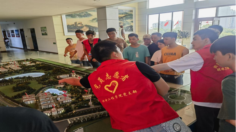 在新生接待处,学生党员、团员佩戴党徽团徽章热情地接待新生,帮忙运送行李,帮助新生缴费大厅缴费等,他们温暖的笑容、热心的帮助是本次服务的亮点。在迎接新同学的过程中,志愿者们还带领新生参观校园、机电工程学院实训室,主动介绍学院优势特色,帮助学弟学妹熟悉校园生活环境,让2023级新同学感受到机电工程学院大家庭的热情与温暖。