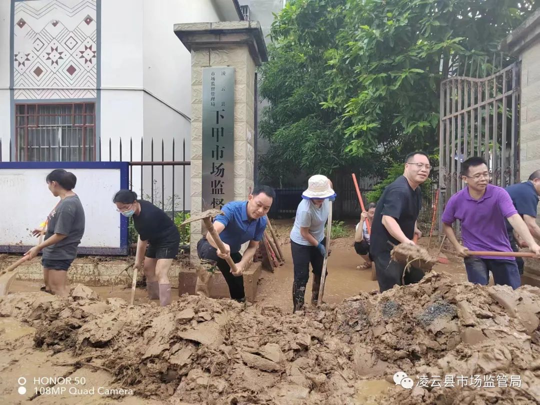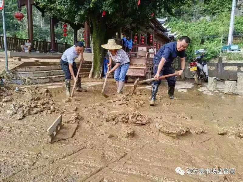 由于8月24日早上,广西百色市凌云县下甲镇部分区域发生洪涝灾害。虽然目前水位已经退去,但下甲镇的道路布满淤泥、部分路段还夹杂着水草,一些轿车被冲走,临街店铺商品、电器损毁严重,凌云县市场监管局由赵昌余书记与戴学全局长带队赴下甲镇进行清淤整理防汛救灾相关工作,利用工具手动清理道路,希望尽快恢复交通畅通,恢复生产生活秩序。