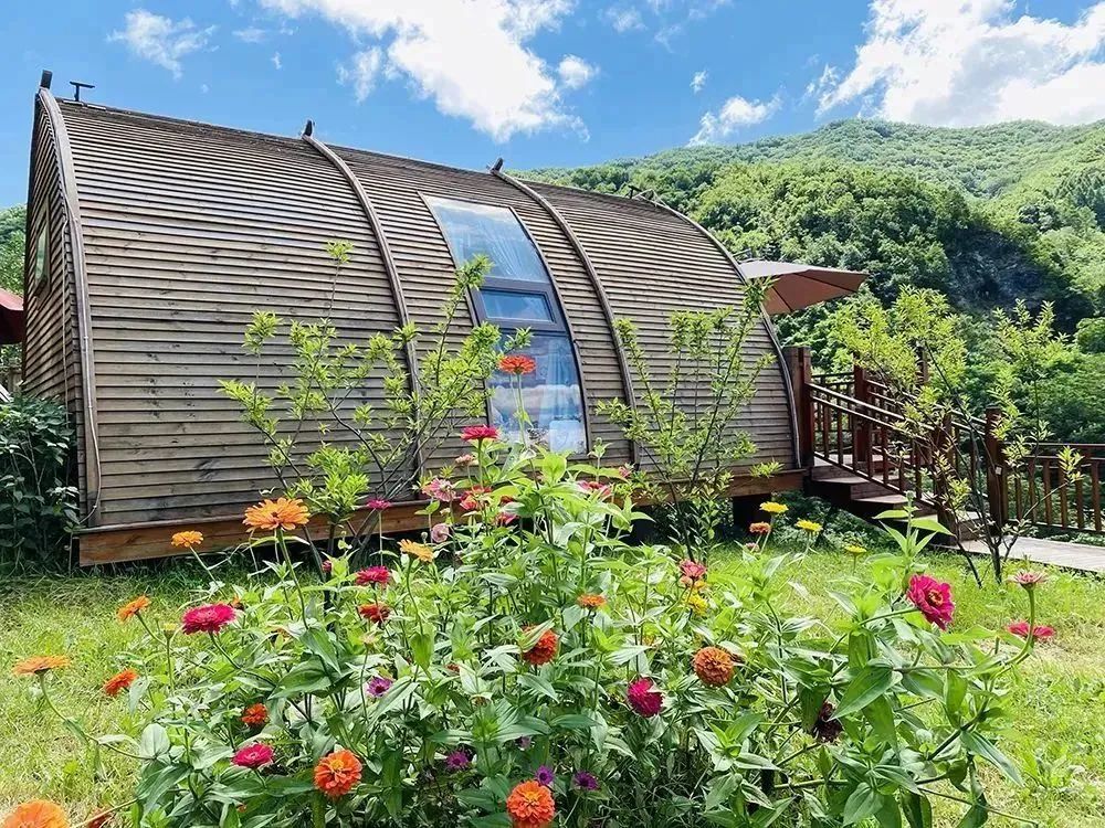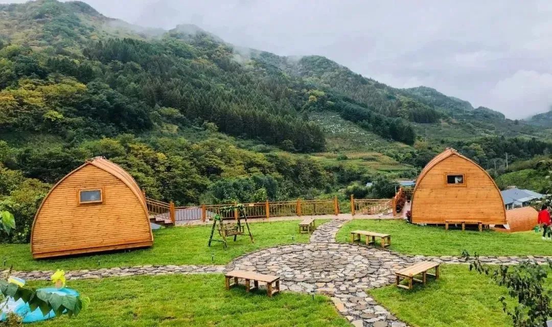 下活龙渔坞,鸭绿江边的渔猎人家。田园、远山、炊烟……沿着蜿蜒小路继续行进,一座座精致的木屋在半山腰若隐若现,这里便是钱湾村“果·宿”露营基地,轻奢风的露营体验,成为游人争相打卡的网红地,小伙伴们一定要预订哦!