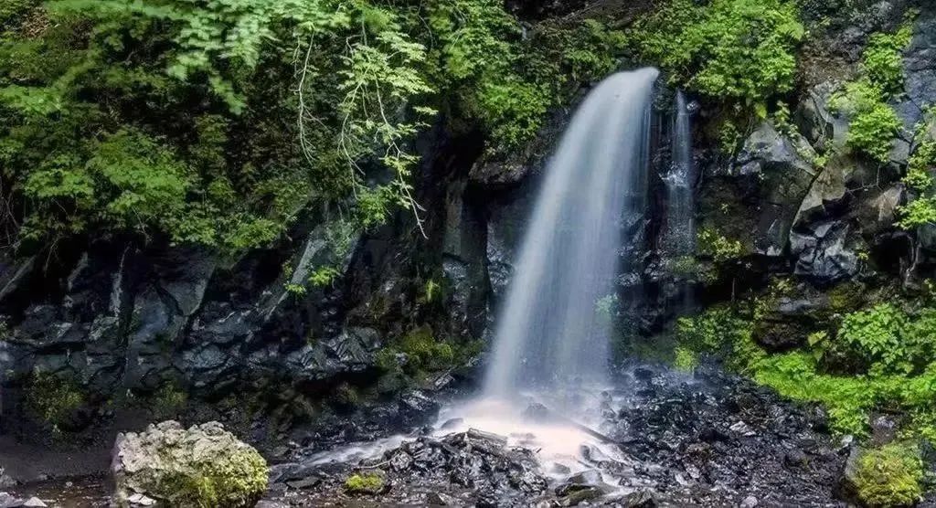 吊水壶瀑布是火山爆发后,河床受张力断迭形成的瀑布,更别致的是另有一处水流好似喷泉,自崖中间凌空喷下,象茶壶中的水从壶嘴中倒出来一样,故当地人称其为 “ 吊水壶 ” 。