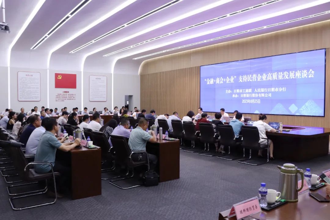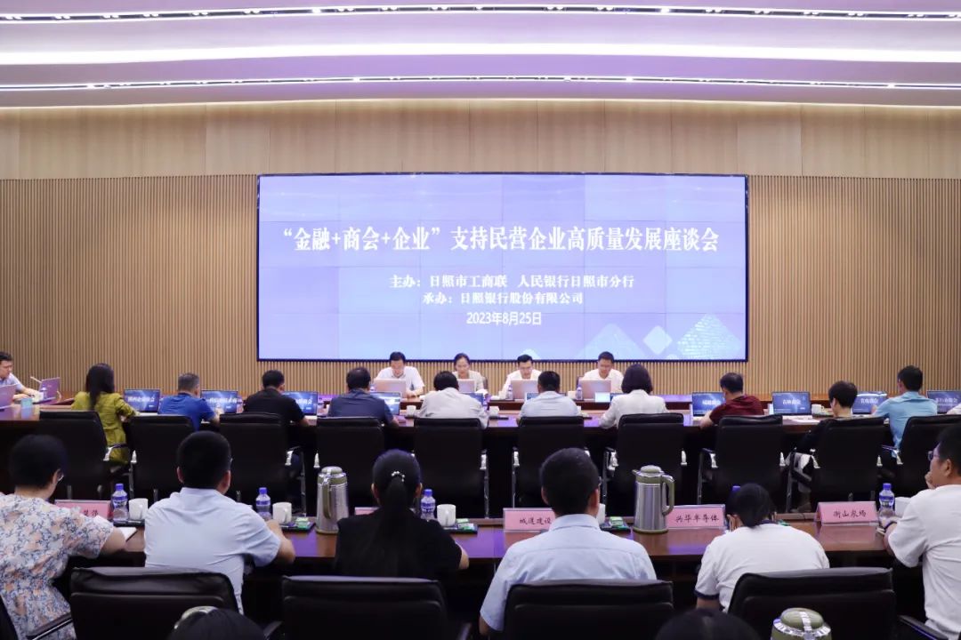 为深入贯彻落实《中共中央 国务院关于促进民营经济发展壮大的意见》,以更大力度、更实举措,为民营经济做大做优做强提供“金融力量”。8月25日,市工商联、人民银行日照市分行在日照银行总行举行日照市“金融+商会+企业”支持民营企业高质量发展座谈会,市工商联副主席陈倩,人民银行日照市分行党委委员、副行长司斌涛,市工商联党组成员、秘书长田伟出席会议,日照银行党委副书记、行长陈迎主持会议,11家商会、40余家企业参加。