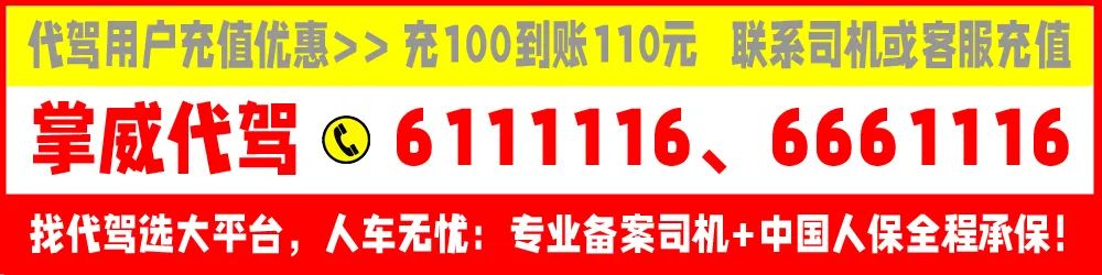 掌威代驾呼叫热线:6111116