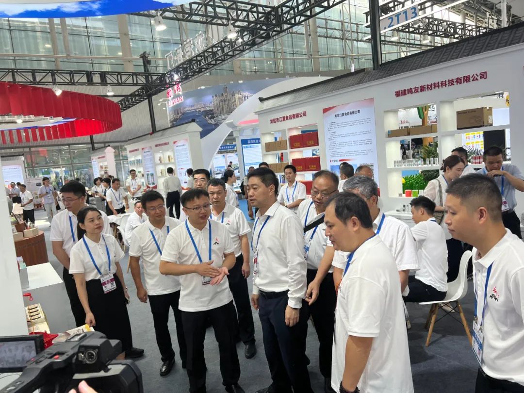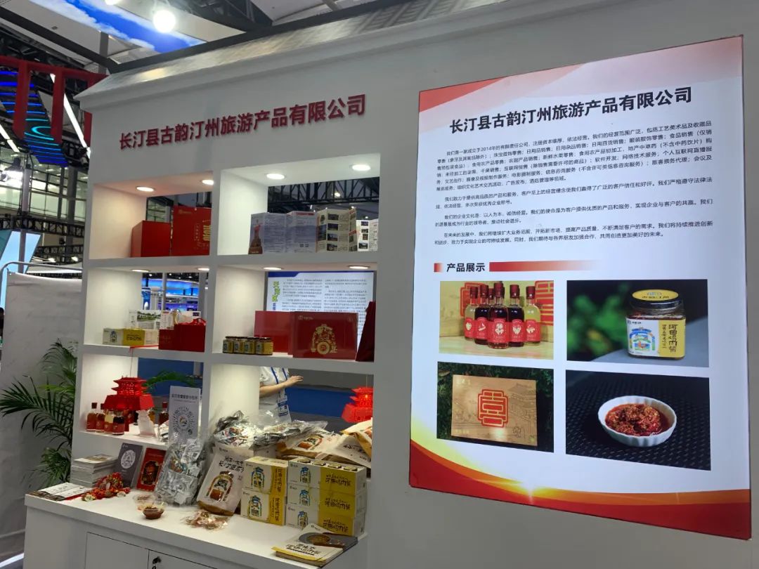 古韵汀州文旅集团作为受邀企业,积极参与本次展会。带来了河田鸡肉酱、豆腐干、泡鸭爪、八喜米酒、对话汀州茶叶以及母亲像车饰、济川门DIY灯笼等特色旅游产品。
