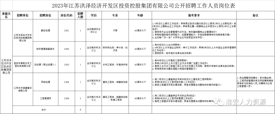 招聘岗位、人数和相关要求详见《2023年江苏洪泽经济开发区投资控股集团有限公司公开招聘工作人员岗位表》(以下简称《岗位表》)。