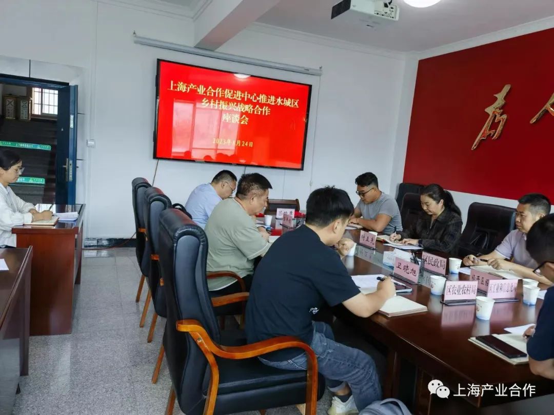 8月24日下午上海产业合作促进中心推进水城区乡村振兴战略合作座谈会。贵州省六盘水市水城区副区长付正先主持座谈会,参加座谈会的有区乡村振兴局、区民政局、区农村农业局、区工信局、水城经济开发区经发局等分管领导出席。
