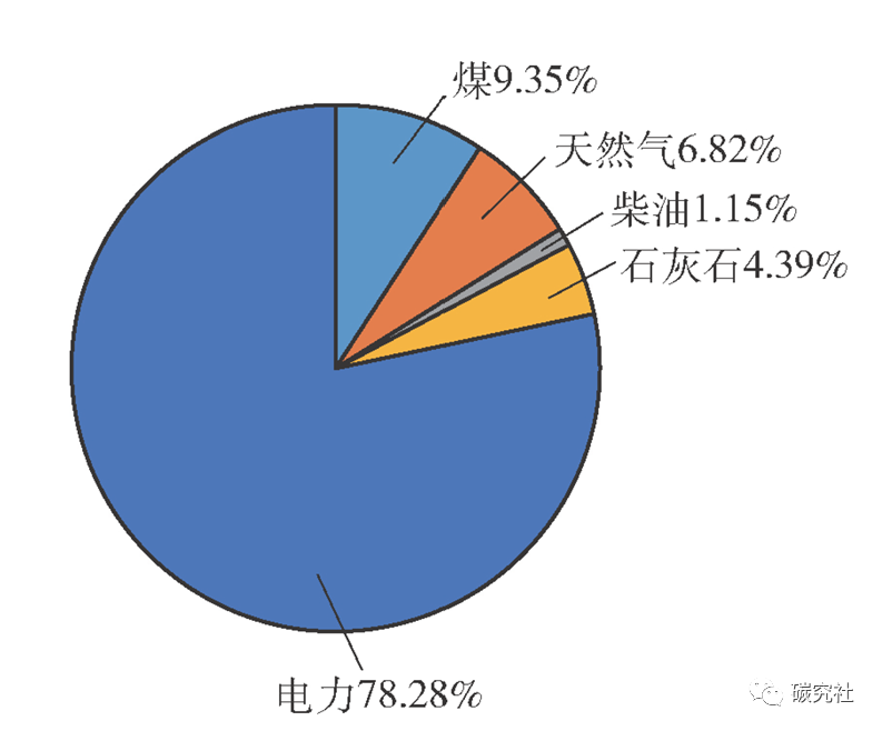 电力间接排放同样是铜冶炼企业的主要排放来源,某铜冶炼企业的排放结构如下: