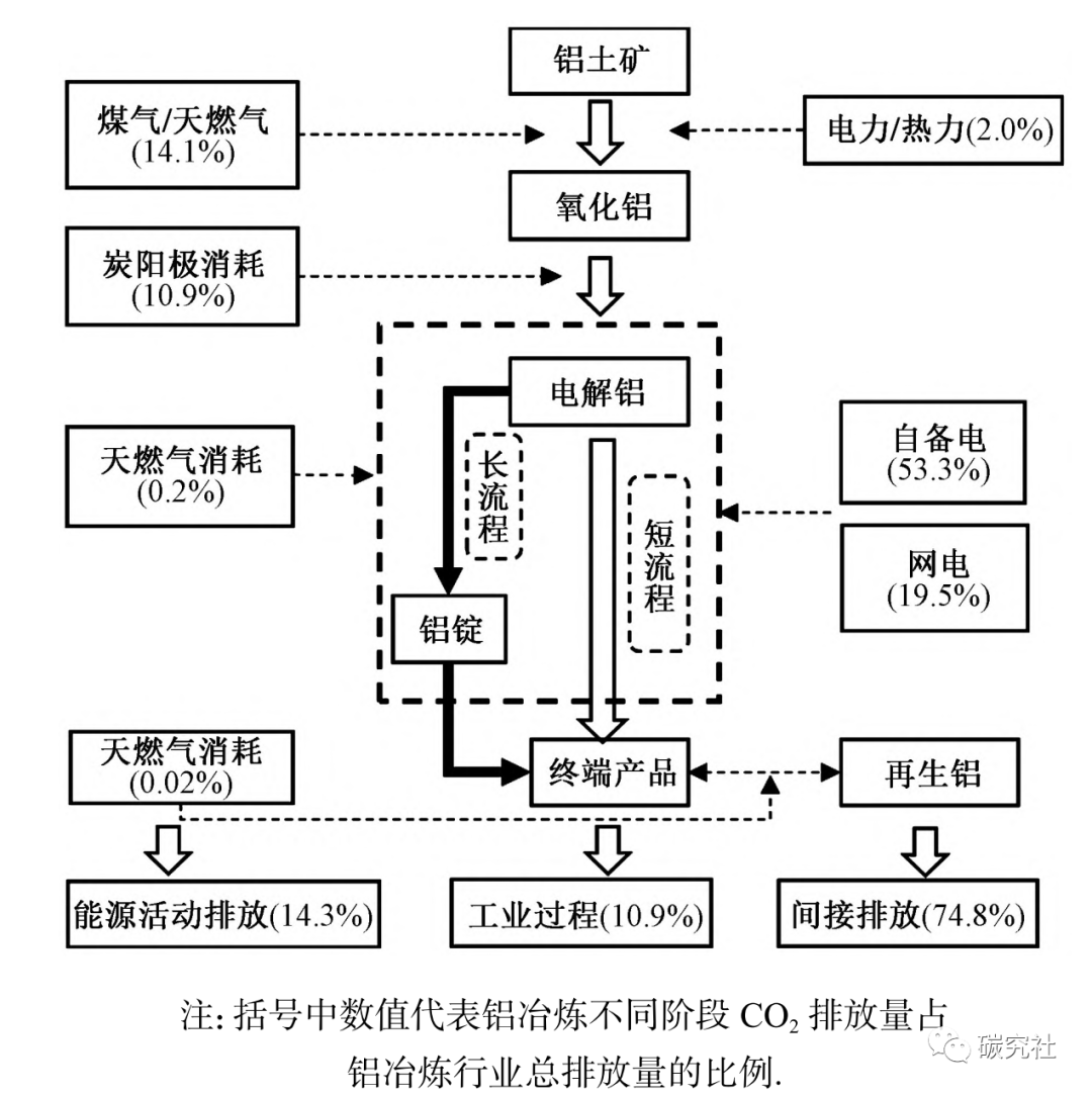 铝冶炼行业碳排放流程(来源:王丽娟等《中国铝冶炼行业二氧化碳排放达峰路径研究》)